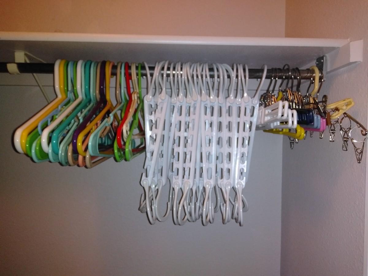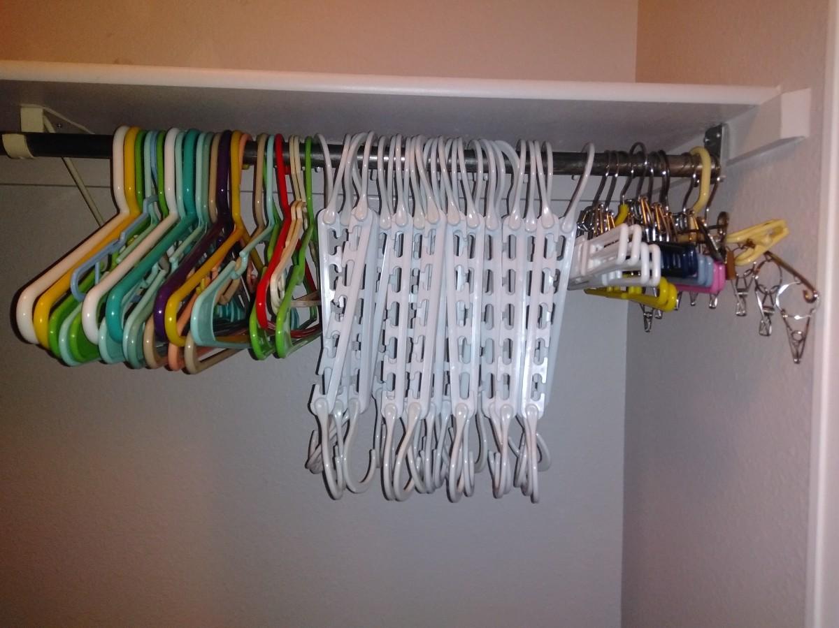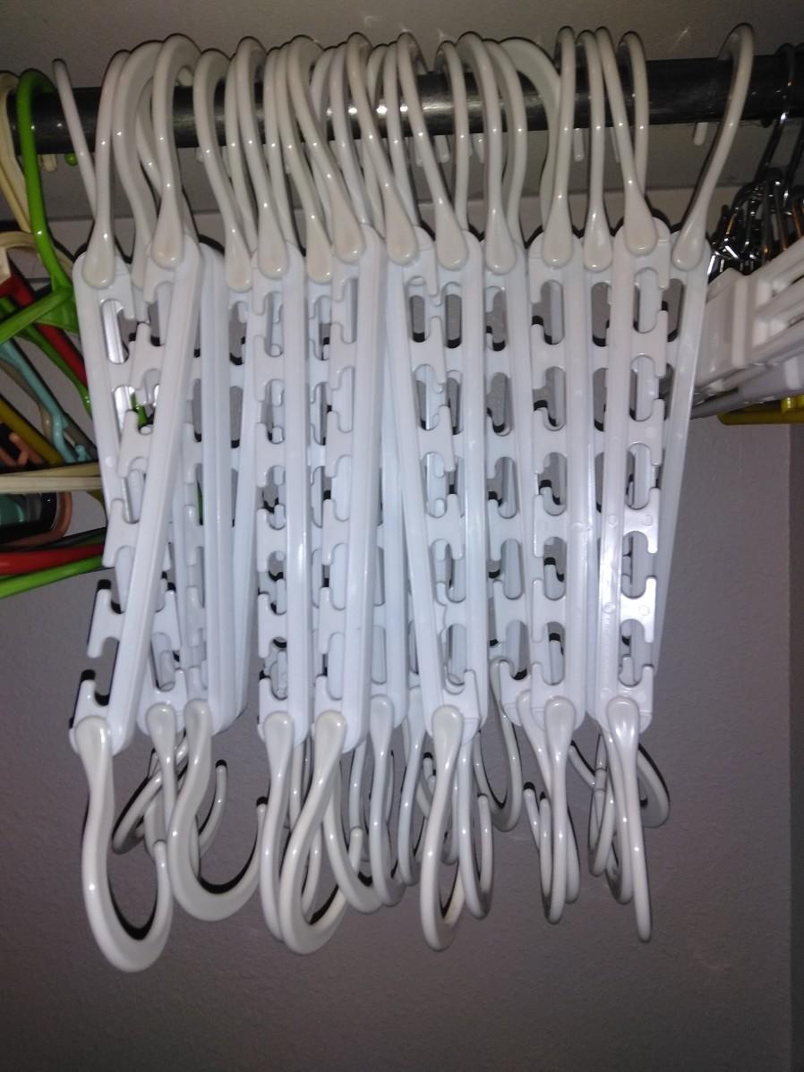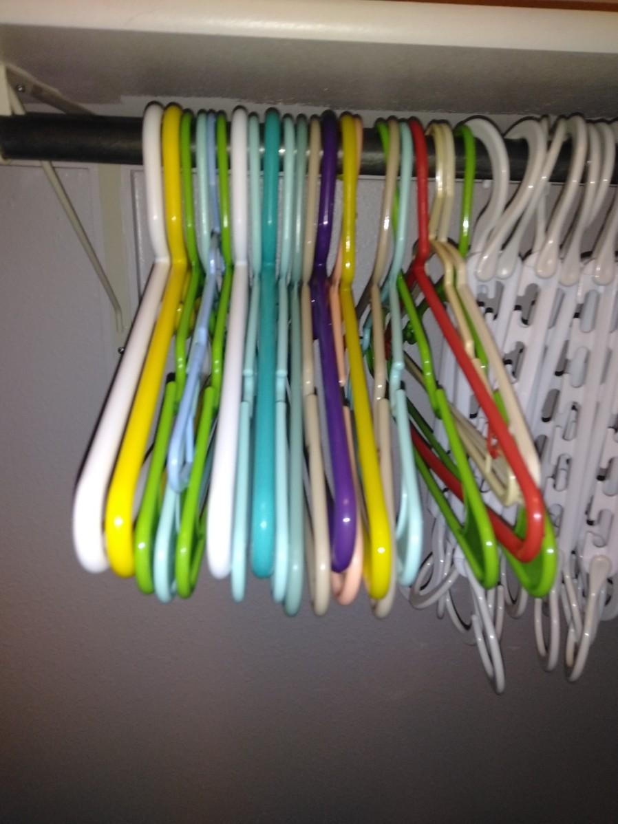 COLORED COAT HANGERS, WHITE MULTI USE HANGERS, AND PANT HANGERS