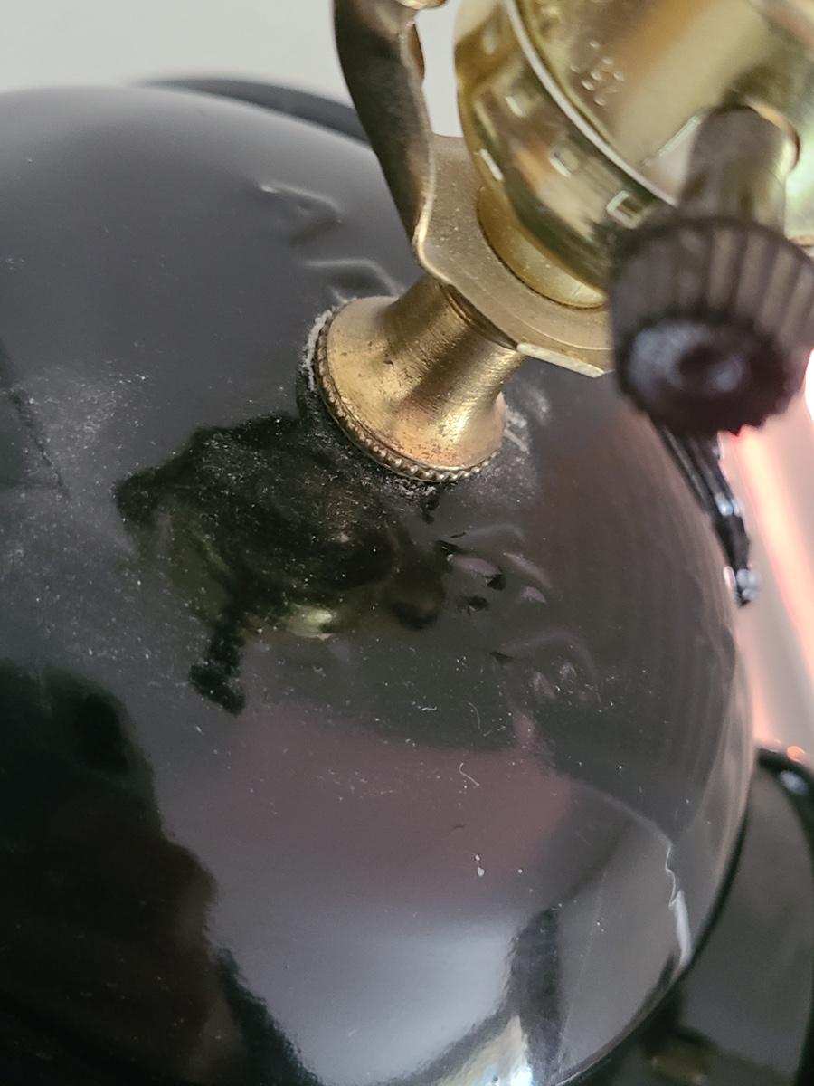 Not sure of the age of this piece. The bottom metal is black and this lights up three ways, just the bottom lights, or just the top, or both at same time. Please see all the pictures for the treasures in each lot. Pick-up for this auction will be on November 13th from 9am to 2pm. The two auctions will be running at the same time, so please make your max bids early as items will be ending at the same time.