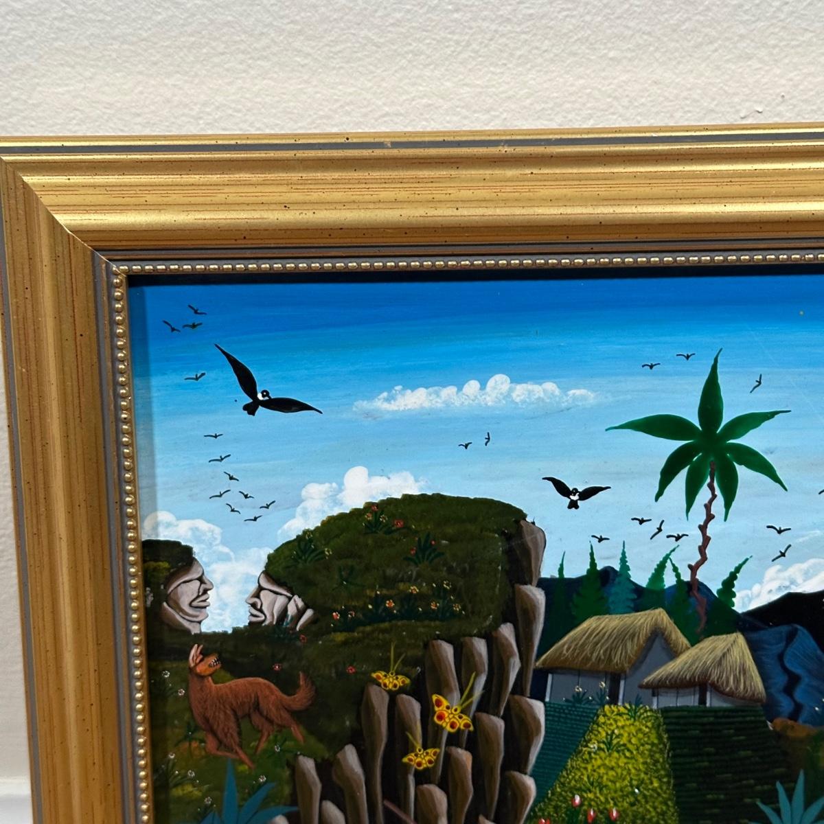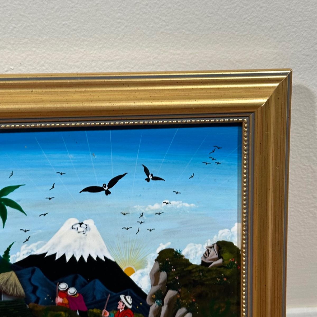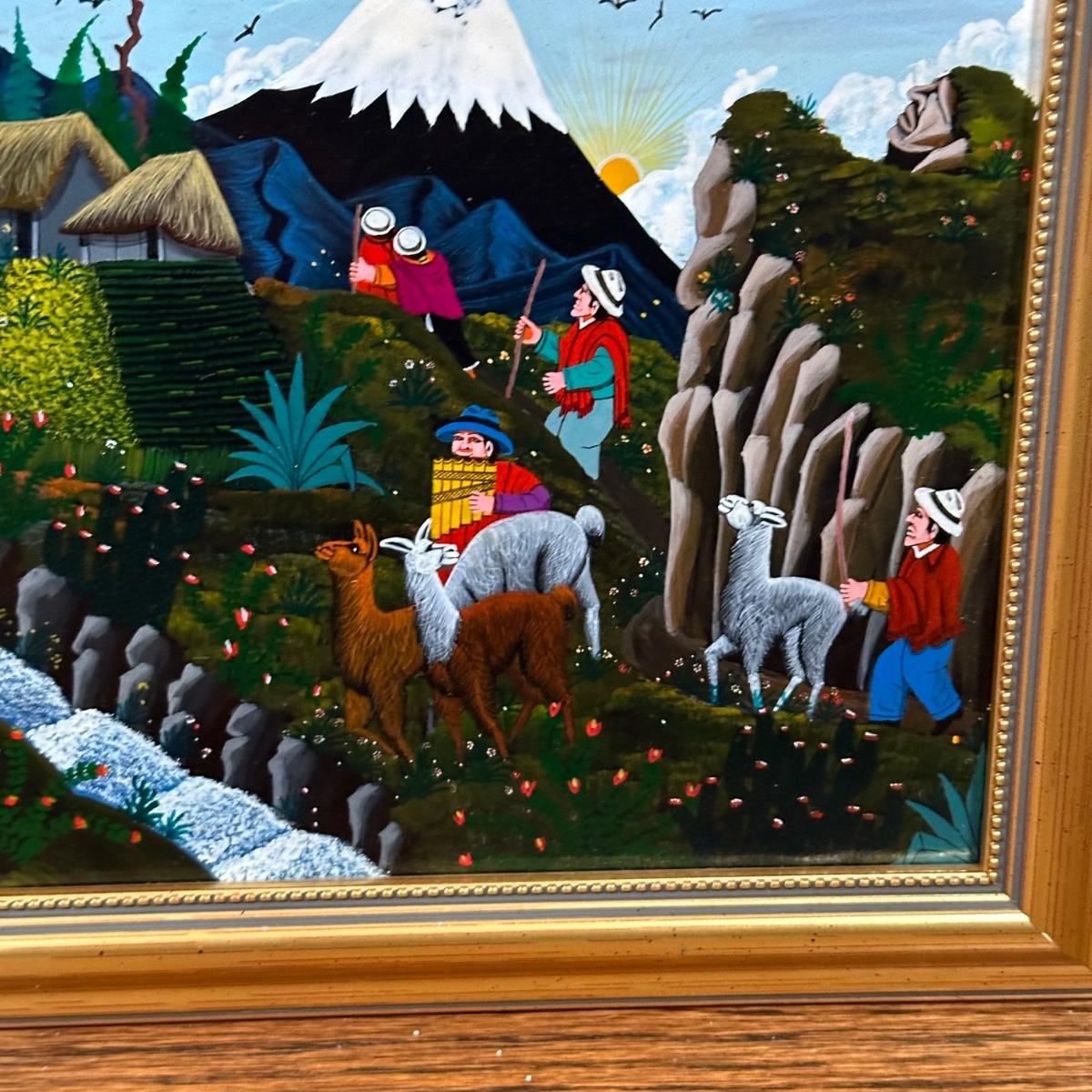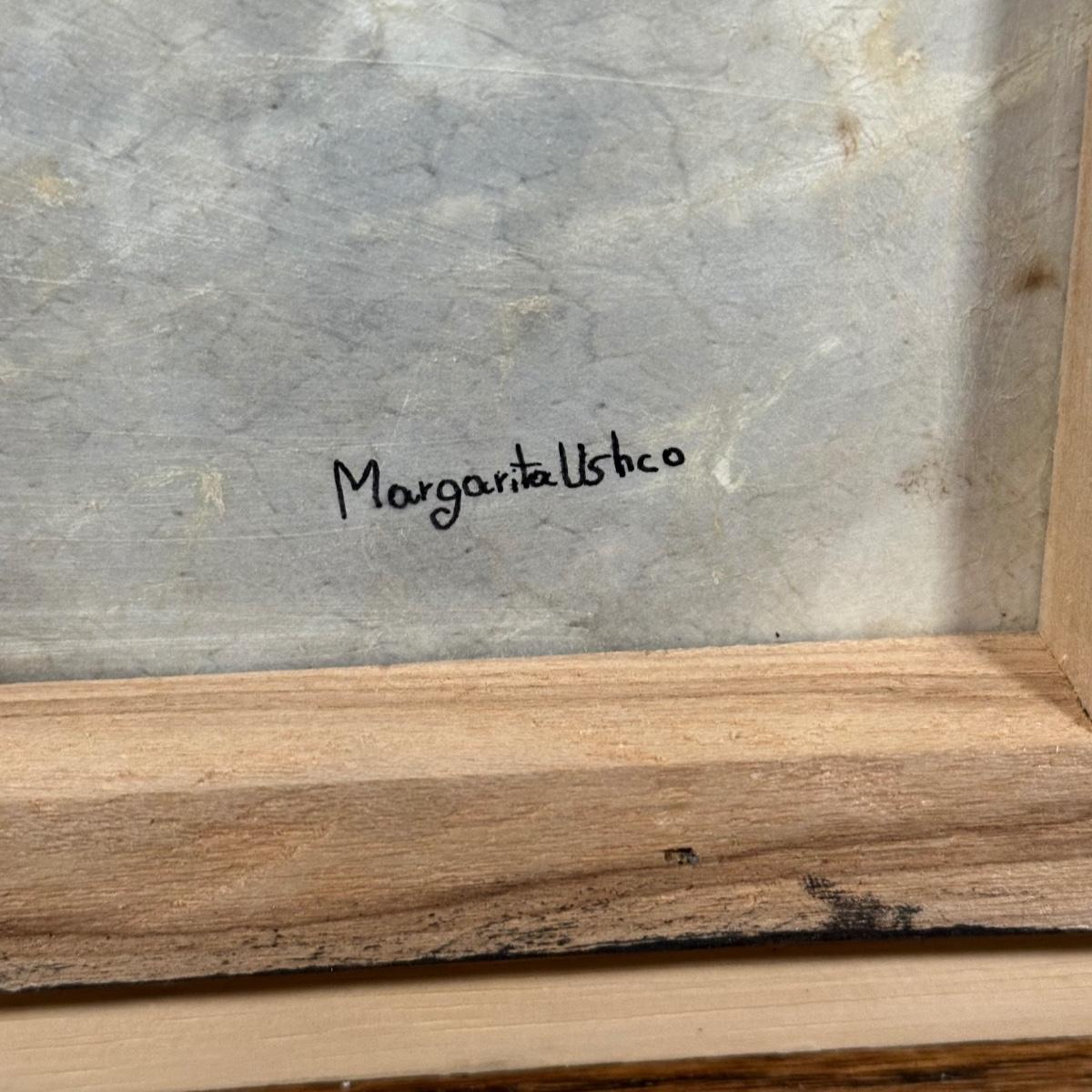 LOT 237X: Framed Ecuadorian Folk Art Painting on Sheepskin by Margarita Ushco