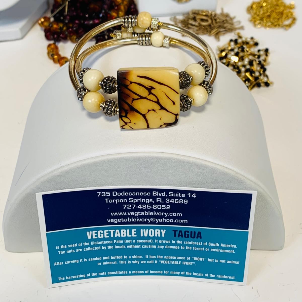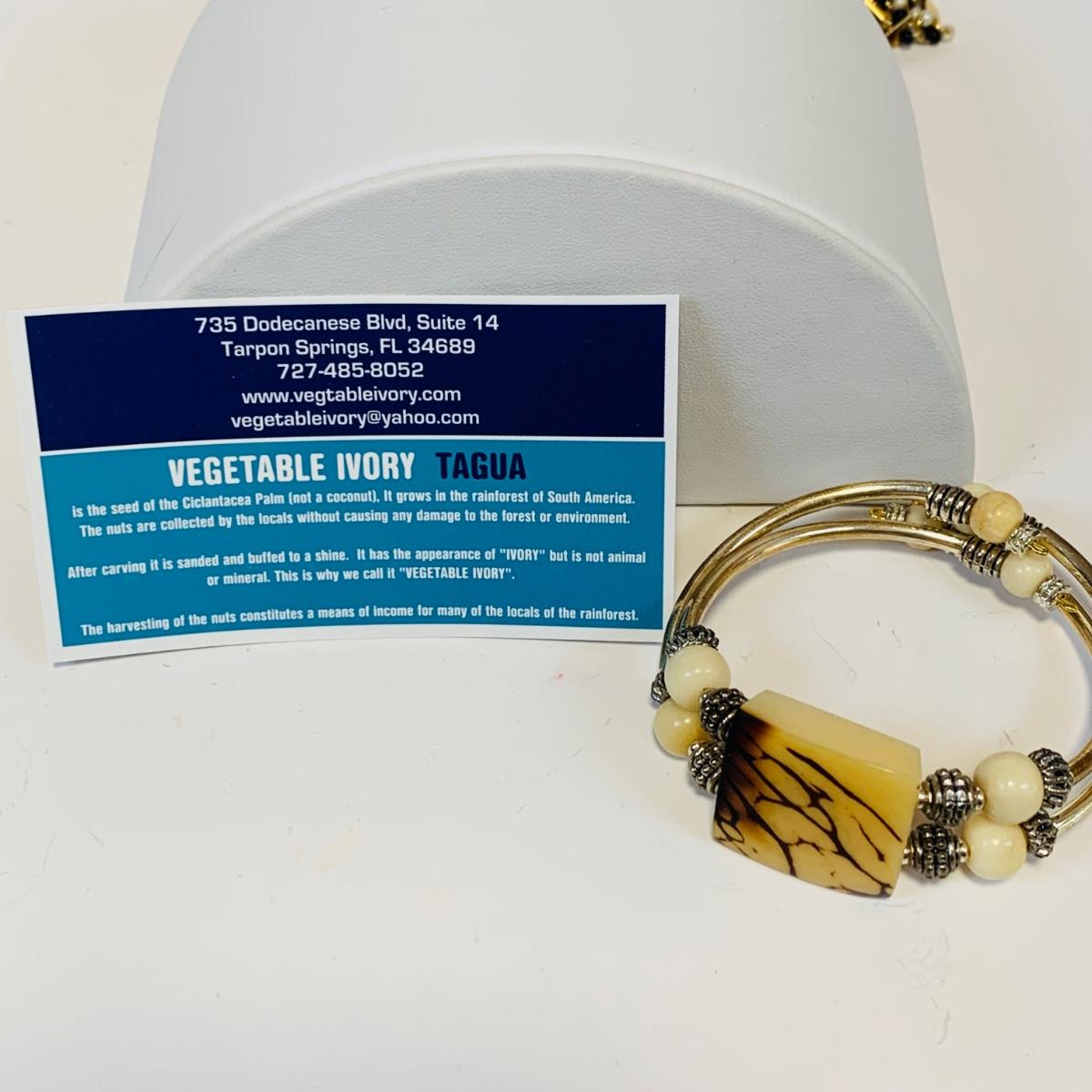 Lot 238: Hand Crafted Vegetable Ivory Bracelet & Gold Tone Collection Brooches, Necklaces, Bracelets