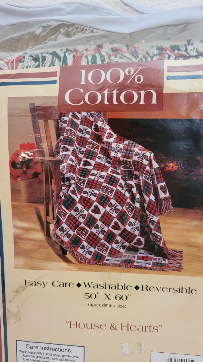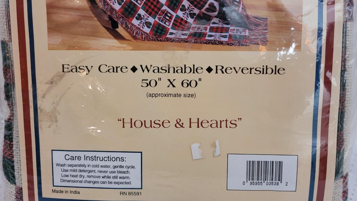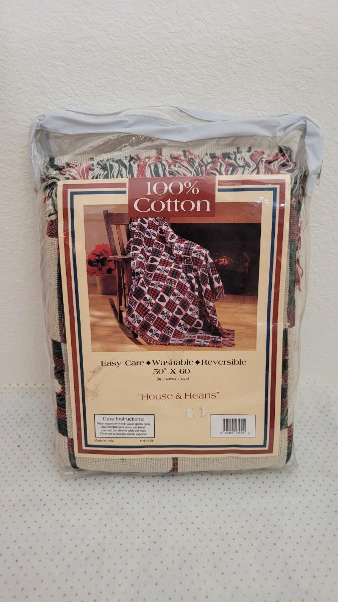 Lot 238: New 50" x 60" HOUSE AND HEARTS 100% Cotton Reversible Blanket