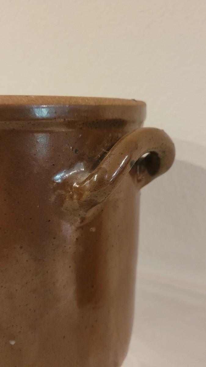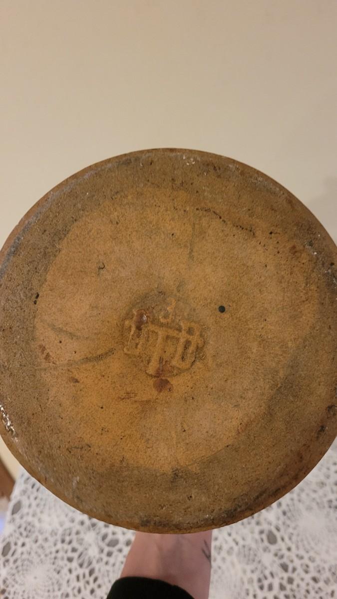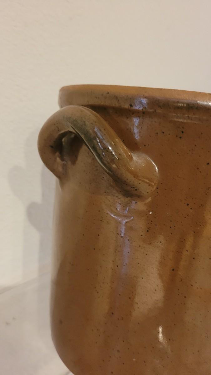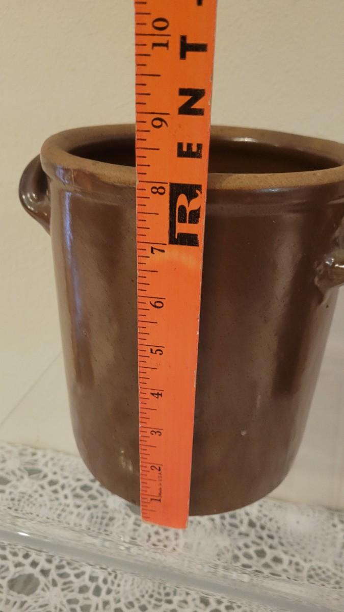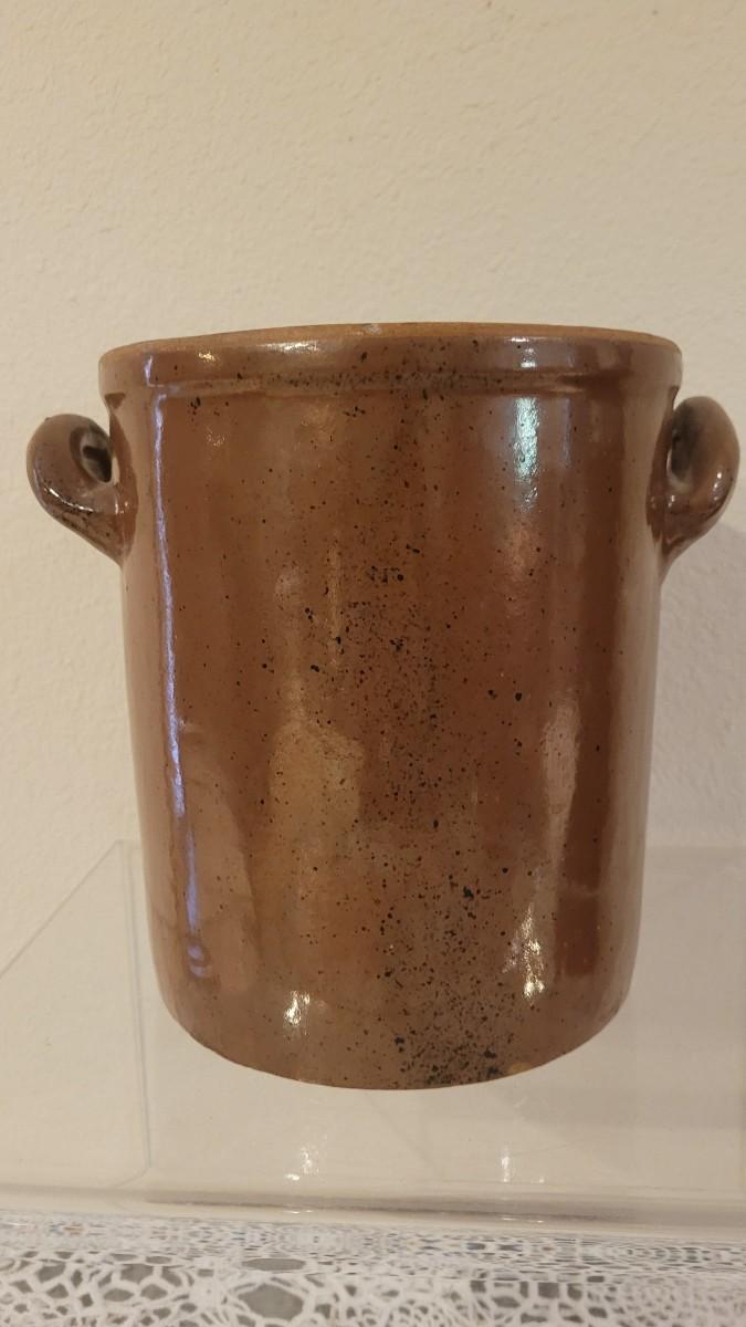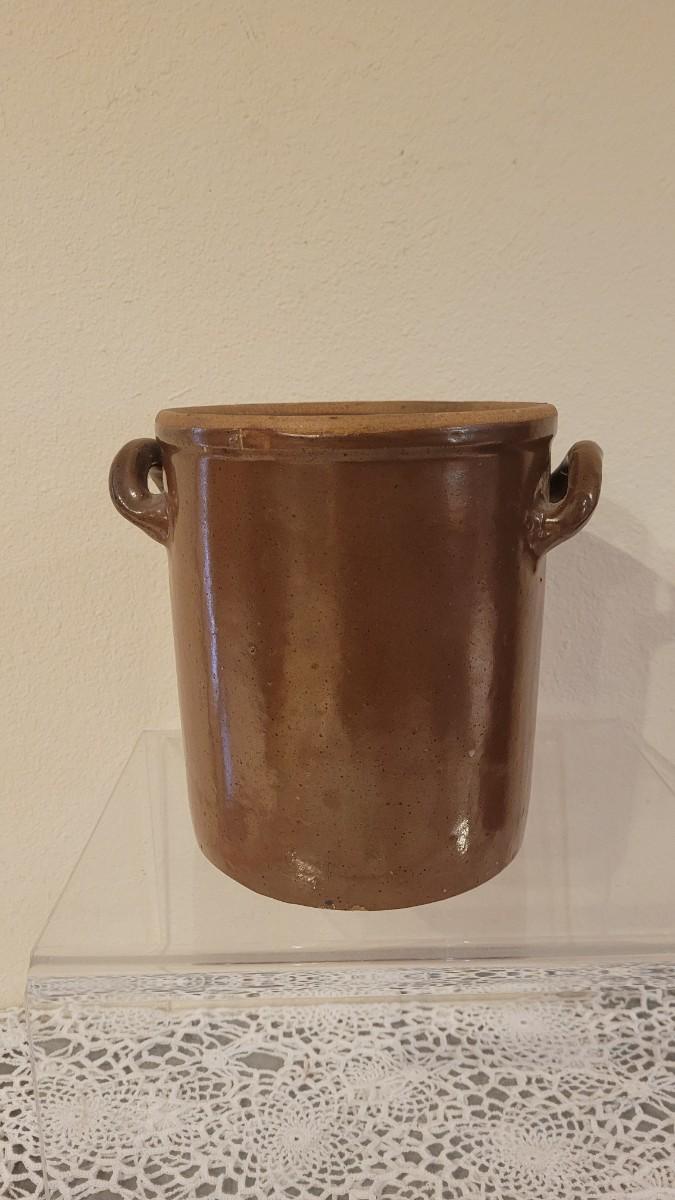 Lot 238: Antique Brown Glaze Stoneware Crock with Double Handles with Maker's Mark on the Bottom