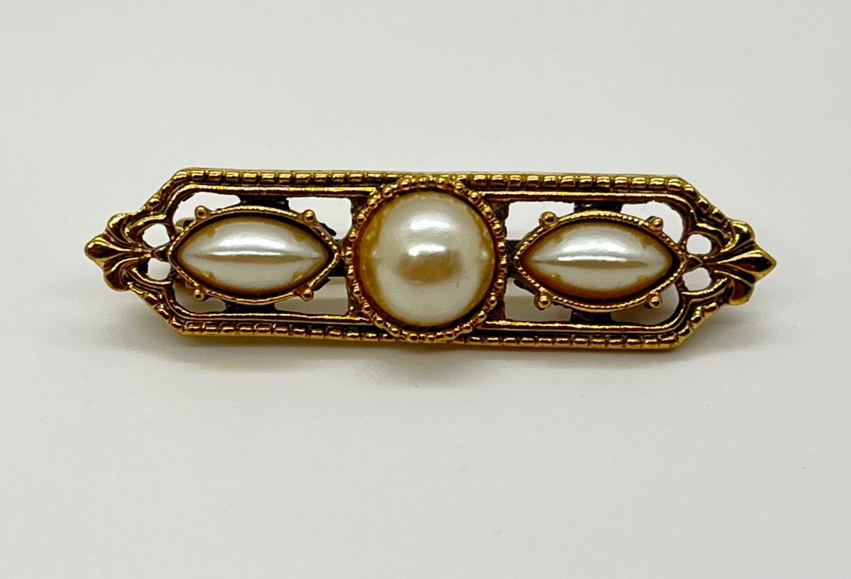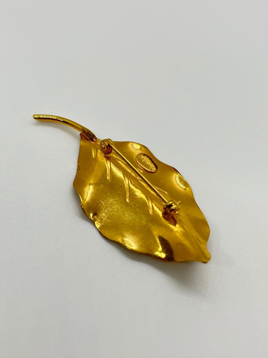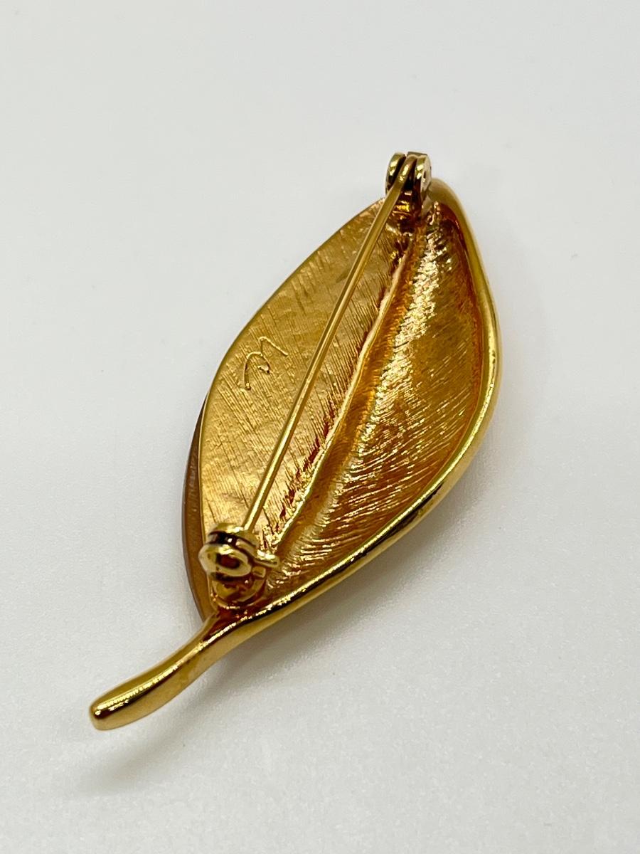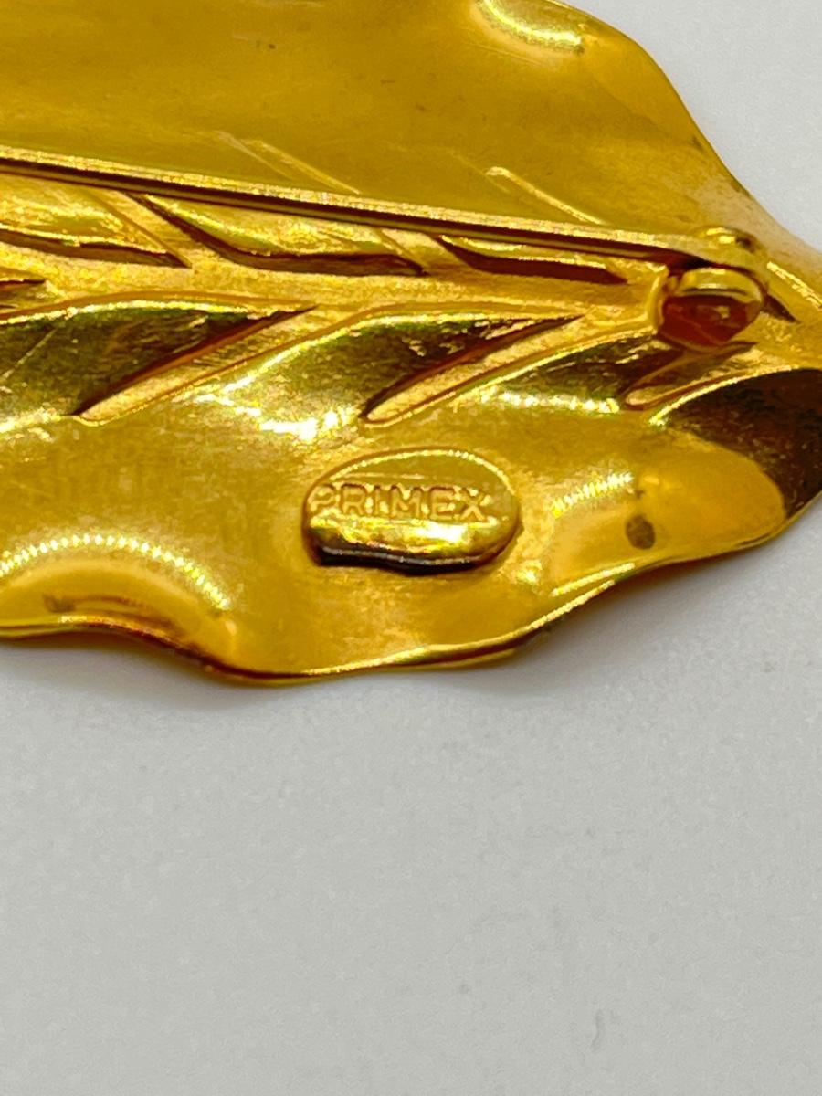 Lot 238: Vintage Brooch Lot: Liz Claiborne Inlaid Mother of Pearl, Primex Gold-Tone Leaf and More