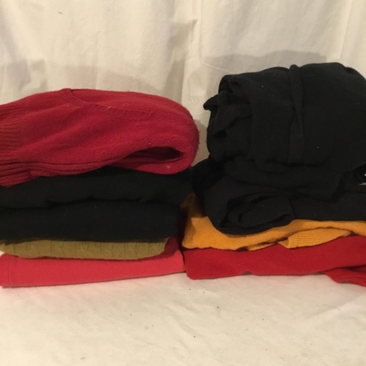 Enjoy a collection of extremely soft cashmere sweaters! These colorful tops are primarily sized women’s large. See photos for details. Shipping available.