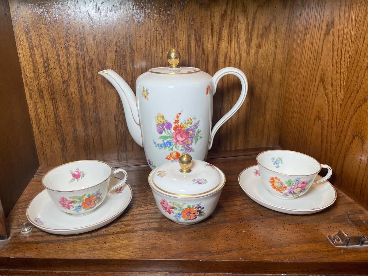 SELB-Germany. Set includes coffee pot, two cups and saucers and a sugar bowl with lid