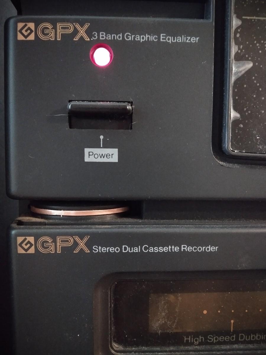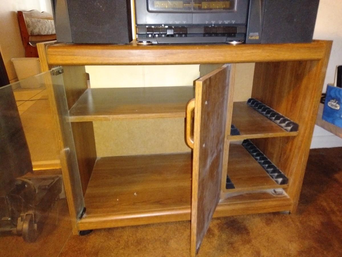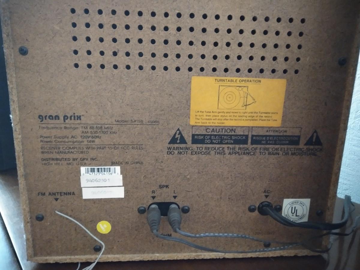 GRAN PRIX STEREO WITH TWO SPEAKERS. AM/FM, TURNTABLE, DUAL CASSETTE, WITH EQUALIZER. MODEL NUMBER S4156 E68496 COMES WITH MEDIA CABINET.