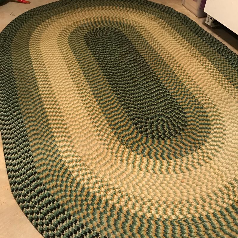 This braided rug in beautiful shades of green and beige is in good condition and approx. 101” x 66.5”. One hole between braids can be easily mended. No shipping. Local pickup only in Arden, NC.