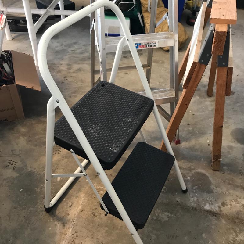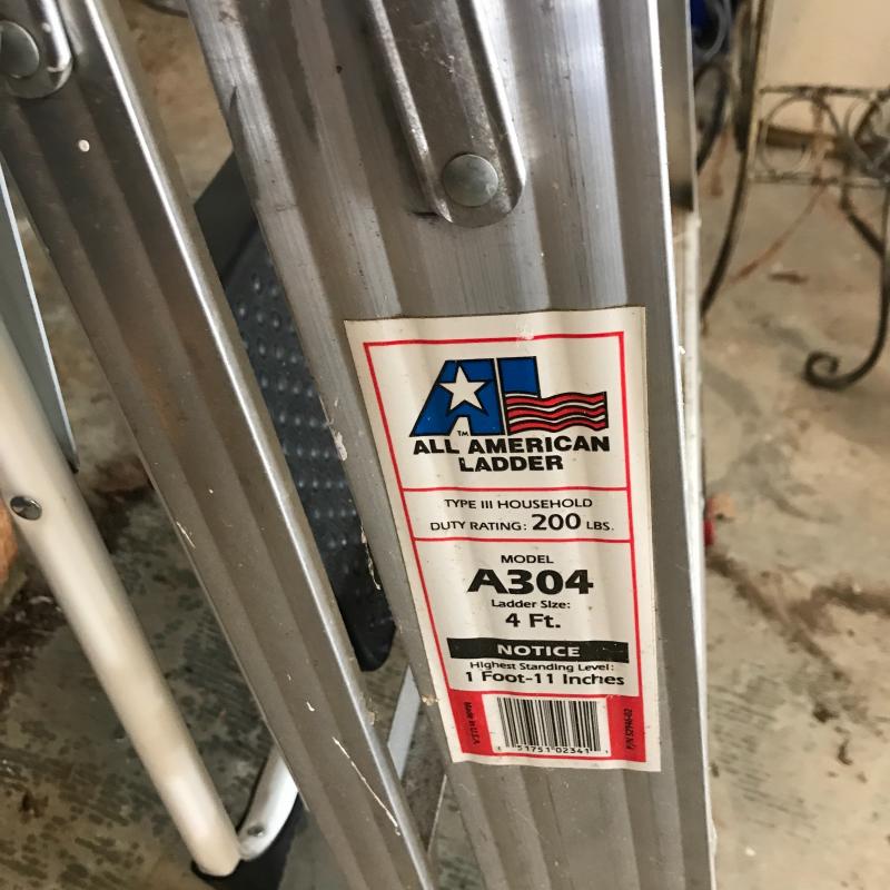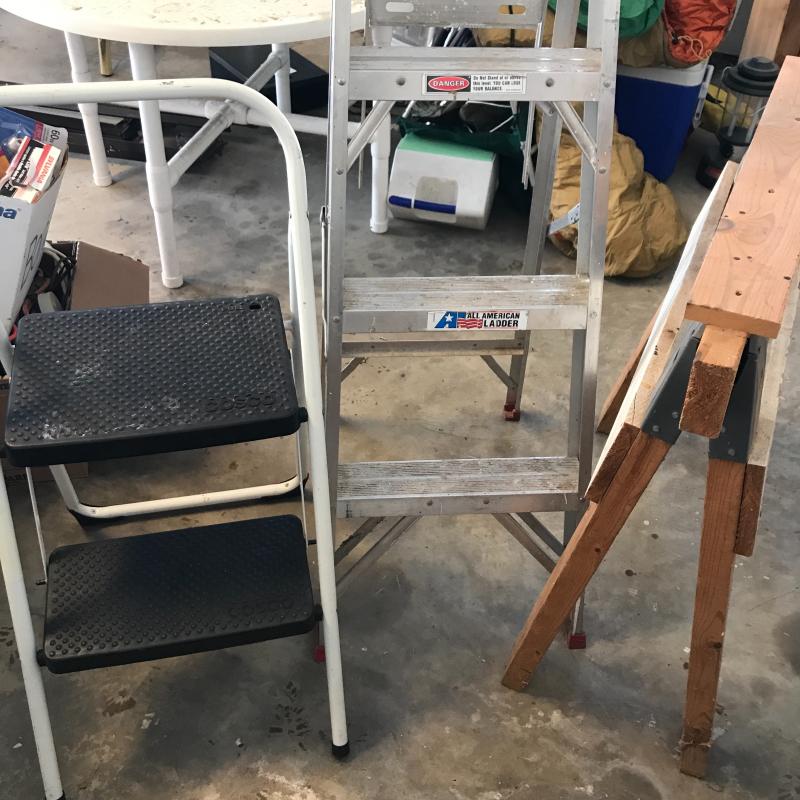 Two ladders and a sawhorse. Metal ladder is 4ft, by All American Ladder. No shipping. Local pick up only in Asheville, NC.