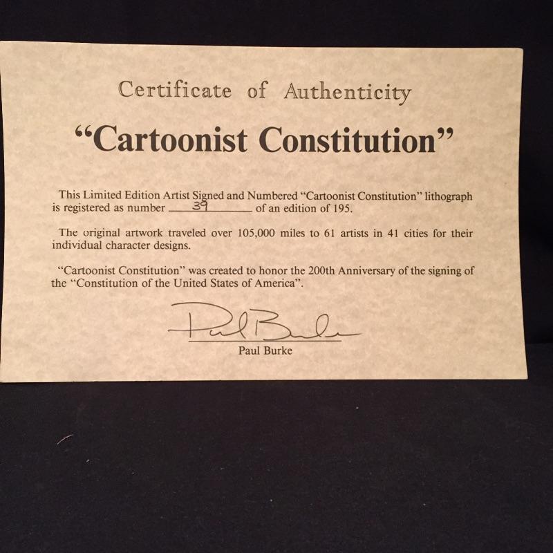 Lot 238 - Limited Edition “Cartoonist Constitution” Authenticated Lithograph