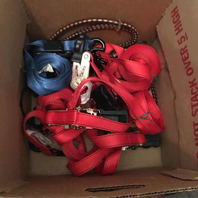 Do it yourself and save cash! Lot features hand truck, furniture dolly, moving blankets, back braces, tape dispenser, gloves, bungee cords and ratchet straps. Be ready for your next move with this practical moving lot.