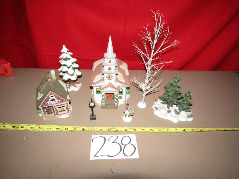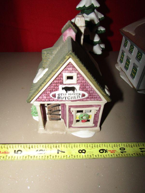 NEW ENGLAND VILLAGE OTIS HAYER BUTCHER WITH ACCESSORIES AND ARLINGTON FALLS CHURCH VILLAGE.