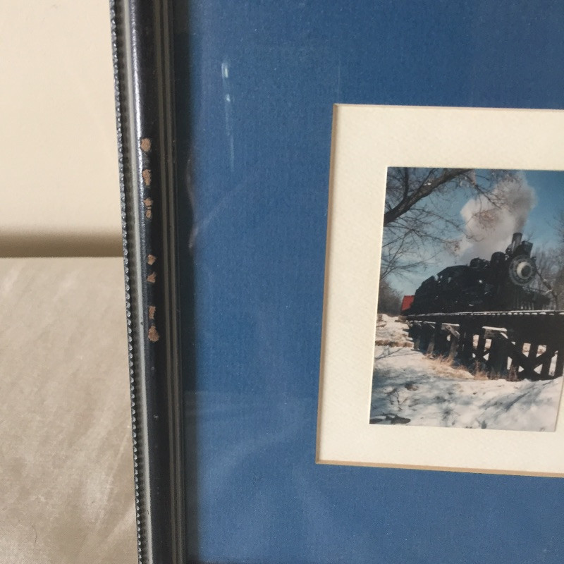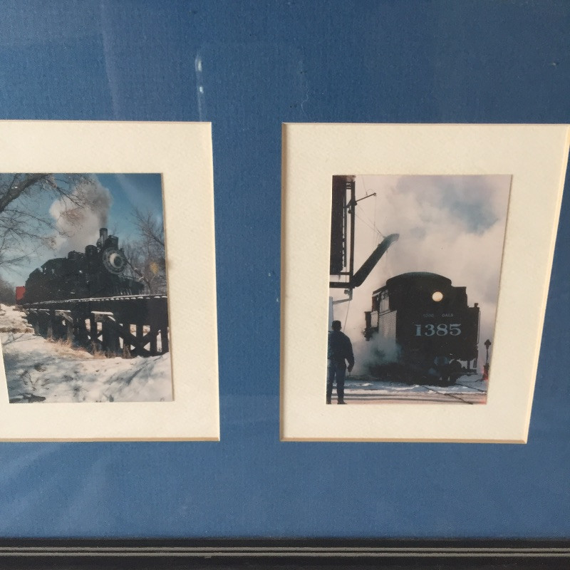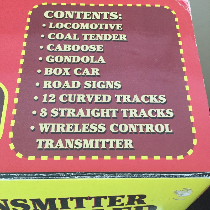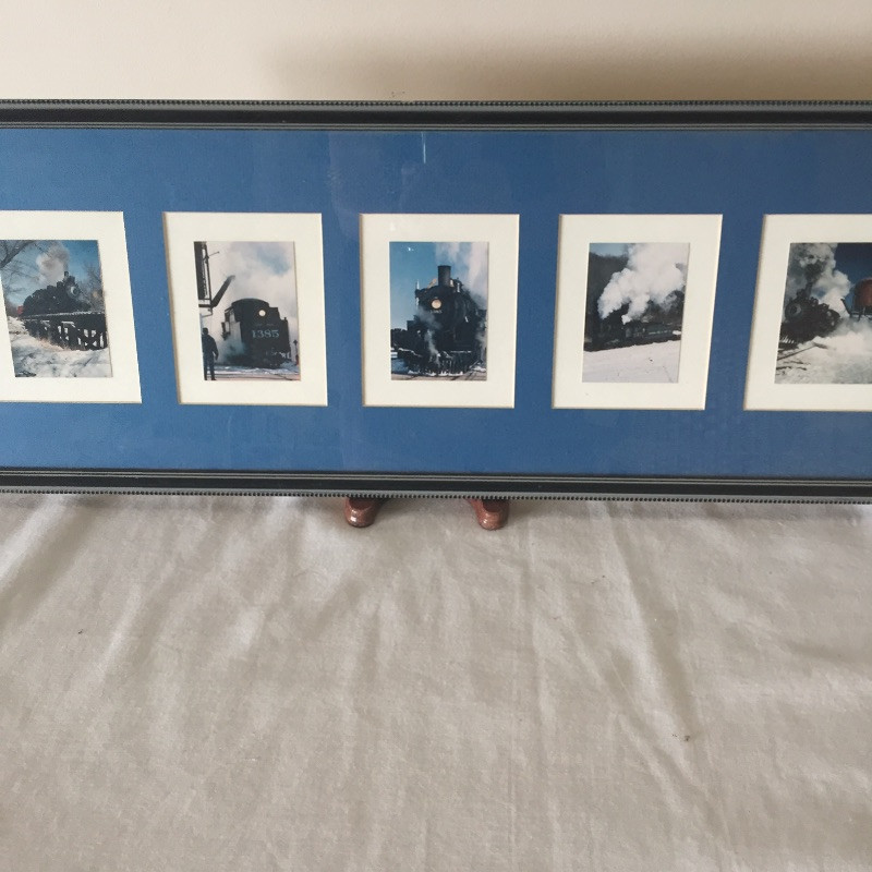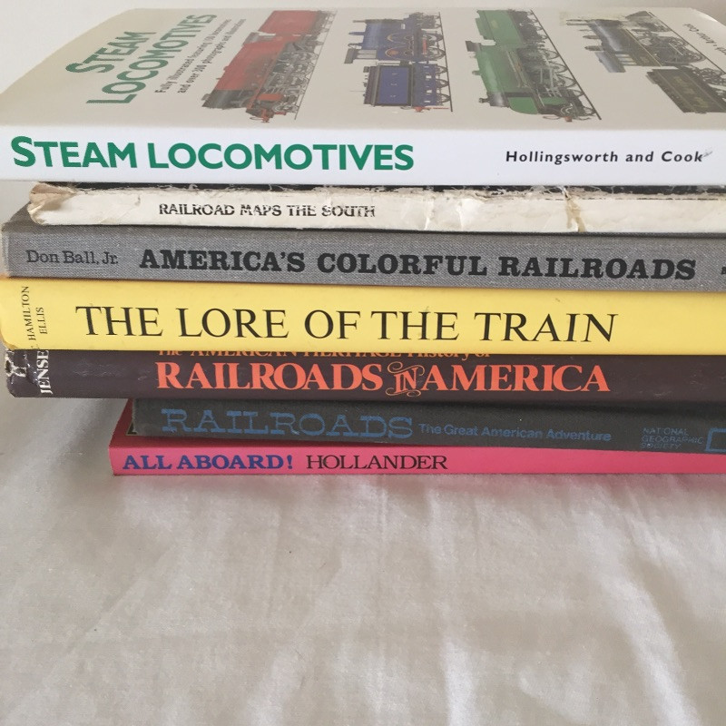 All Aboard for this great collection of trains and train paraphernalia. This large battery operated train set comes with a blue locomotive train with the numbers 3691 on the side and has a coal tender, a box car, gondola and caboose. Also included are the tracks and remote control. This set appears to be in great shape, comes with the original box but has not been tested. See images but note we cannot guarantee that all pieces are accounted for. Also included with this lot is a framed collection of train images, frame does have a few scuff marks. Streamlined, a three car wind-up train that is in original box, a nice selection of books and a safety collared shirt.