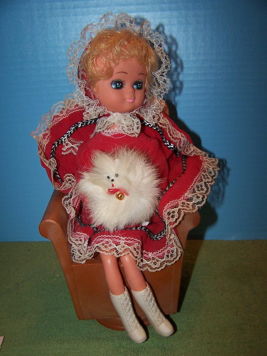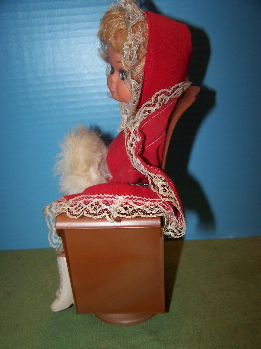 THIS IS A SWEET VINTAGE MUSICAL GIRL ON JEWELRY BOX... SHE/BOX IS PLASTIC...THE JEWELRY IS IN THE CHAIR... IT WORKS, PLAYS ''LONDON BRIDGE''...12'' TALL... LIGHT FADE/WEAR....
