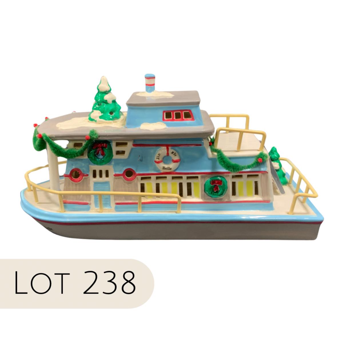 The Jingle Belle Houseboat has certainly hosted some parties over the years. Now it’s time for her to dock at your port. One of the railings on the top deck has been repaired. Please see photos for details and condition. ::: Shipping is available on this lot. If you require shipping you must let us know at the close of the auction. We will coordinate with you after the item has been won. Shipping fees will include insurance up to or exceeding the value of all items being mailed. If you have any questions regarding this lot please contact the auctioneer either via this website, by direct email or by phone. PICK UP TIMES and other important information can be found in the TERMS and DESCRIPTION of the auction. Please take a look for pertinent information. Thanks! Any condition statement is given as a courtesy to a client, is an opinion, and should not be treated as a statement of fact. Reference to condition written, oral or within a condition report shall not be regarded as a full account of condition and may not include all defects, alterations, or restorations. Absence of a condition report does not imply a lot is flawless or lacking imperfections or damage. Katherine’s Auction & Appraisal Service shall have no responsibility for any error or omission. Returns shall not be accepted on the basis of condition.