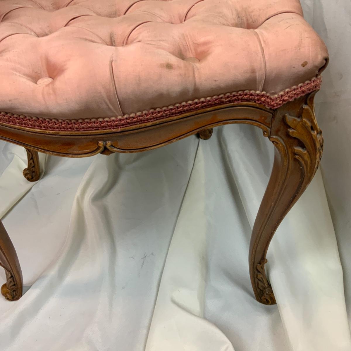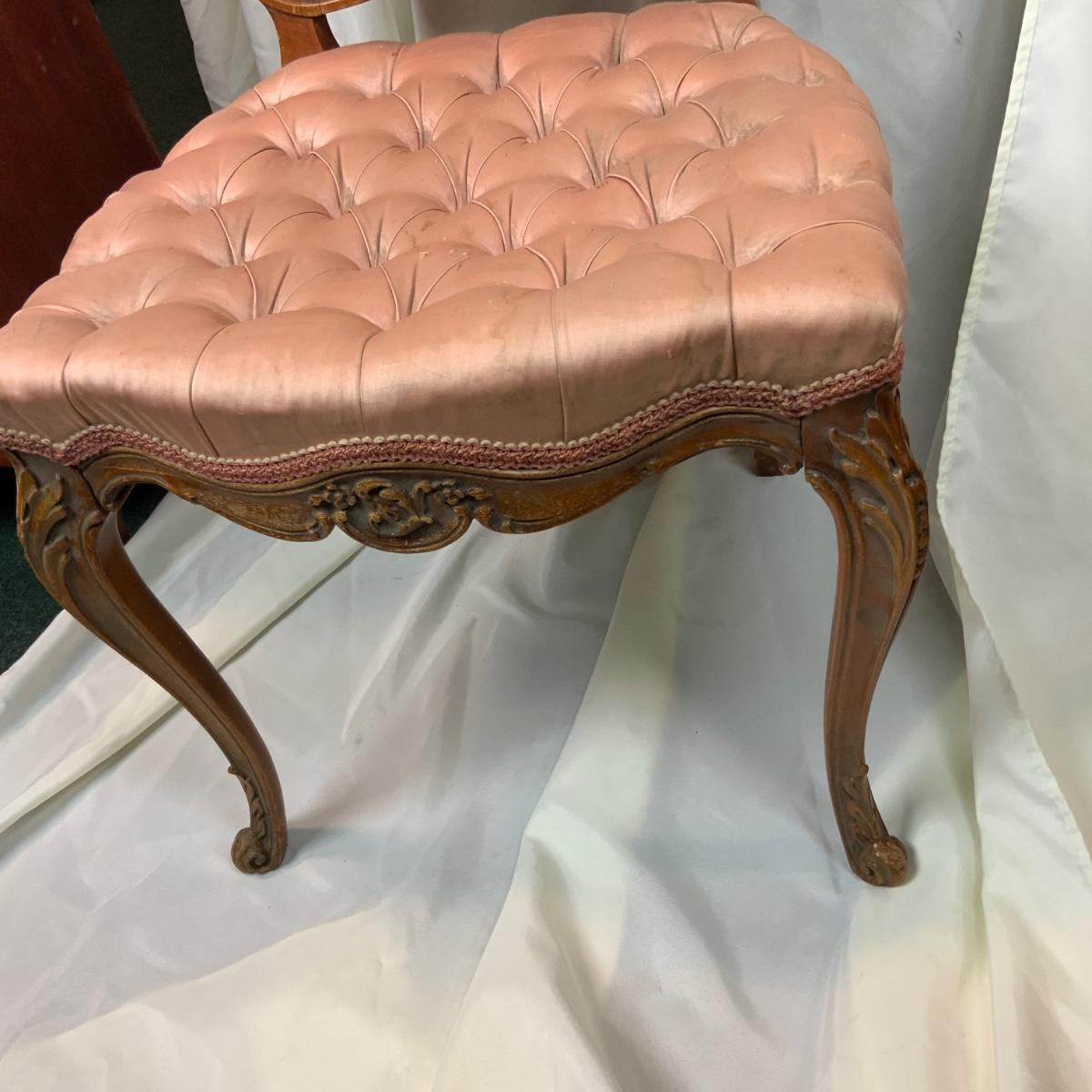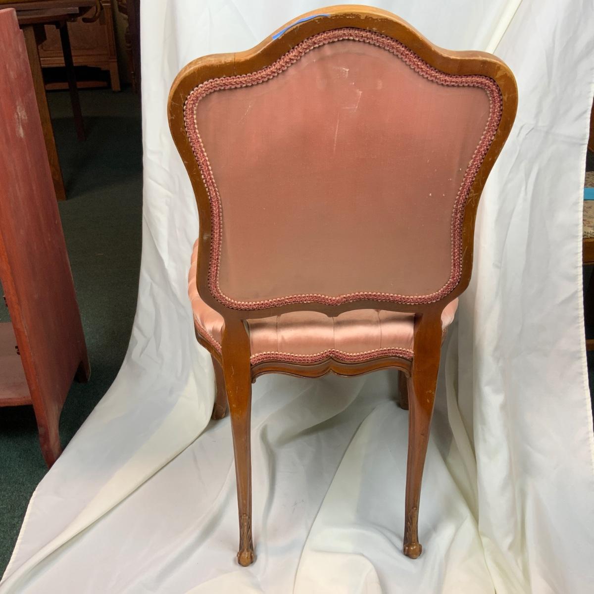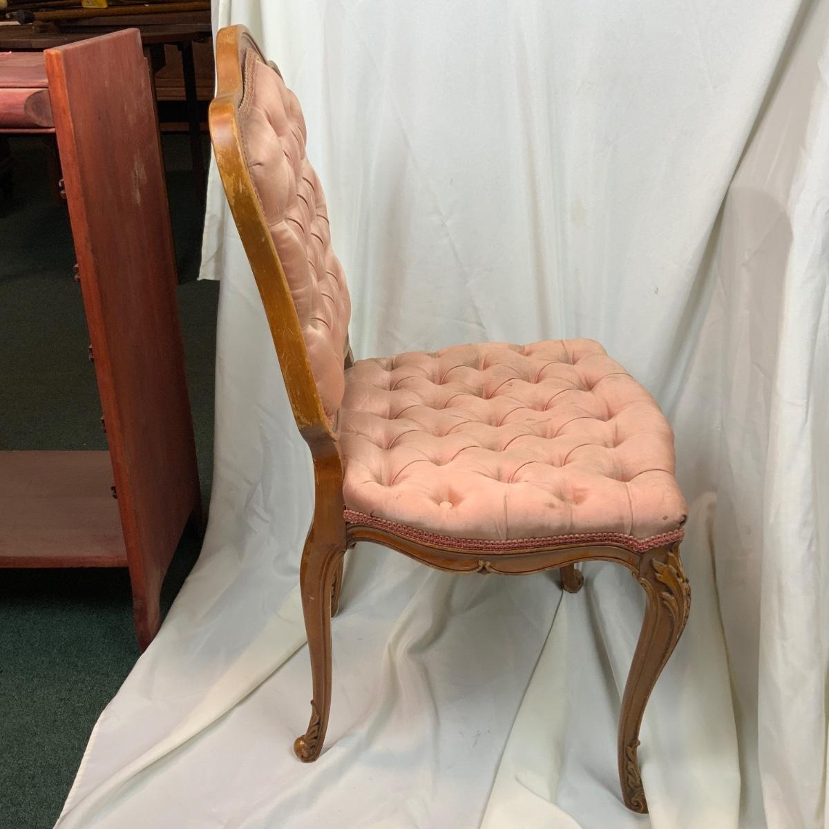 Tufted pink satin chair. Need some cleaning and attention. Overall a nice piece. //::\\ Please see photos for details and condition. No attempt has been made to hide any imperfections. All items listed in this auction are warehouse items, and need to be cleaned. A majority of the items need restoration as well. All items are sold AS IS and WITHOUT GUARANTEE. If you are uncertain about an item, DO NOT BID. Due to the nature of this online auction in-person inspection is HIGHLY recommended. All Sales are FINAL. Pick Up Times are FIRM. Please confirm with your own schedule that you can pick up in the scheduled times listed in the Terms and Conditions. Any questions please message the auctioneer. DO NOT Contact The Harp Gallery.