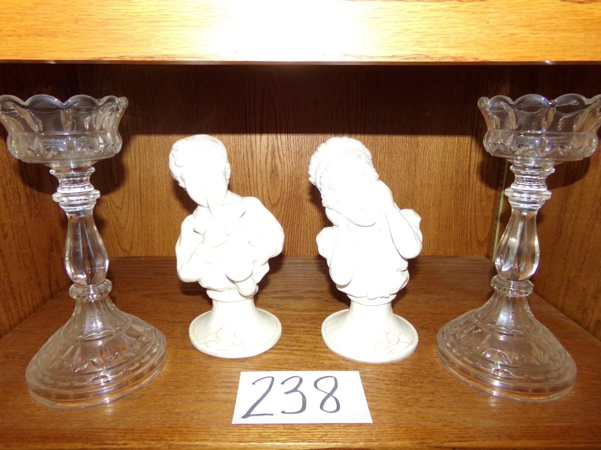 LOT 238 U. KENDRICK STATUES & VINTAGE CRYSTAL CANDLE HOLDERS