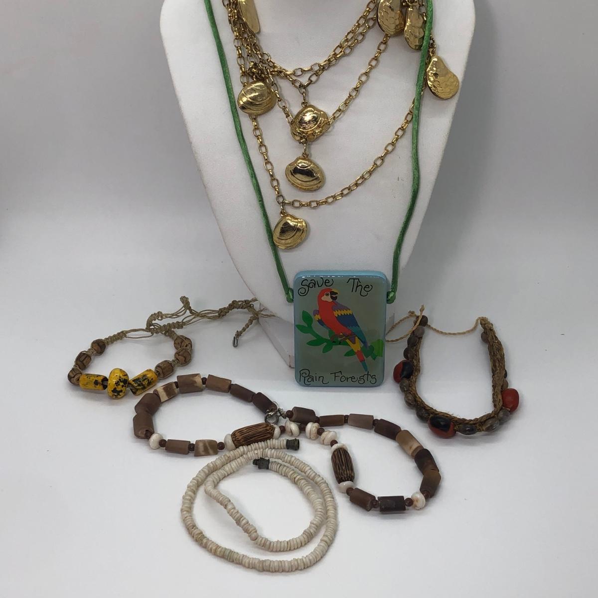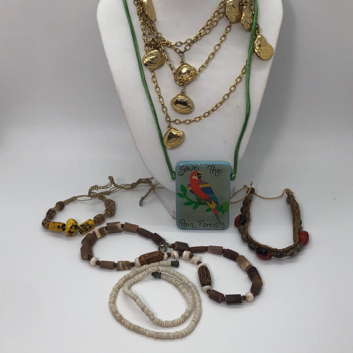 LOT 238M: Save the Rainforest Necklace, Goldtone Clam Necklace, Bracelets & More
