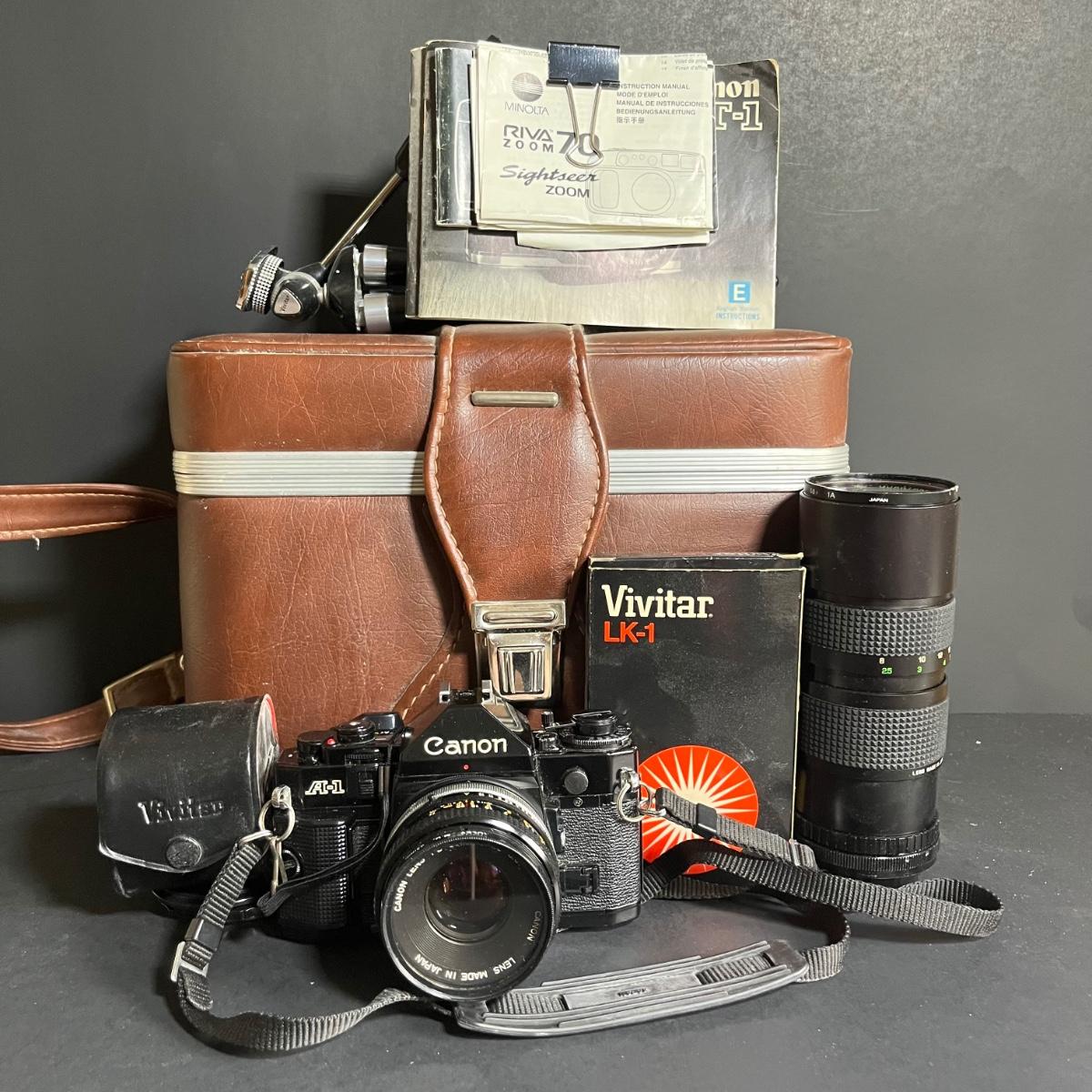 LOT 239M: Canon A-1 Film Camera w/ Lenses, Flash, & Various Accessories