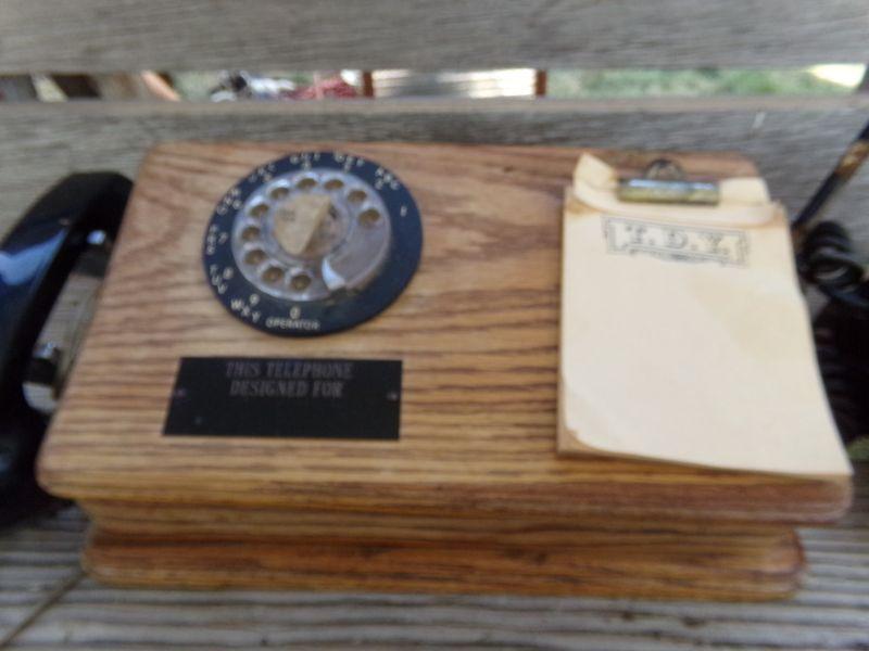 THE PERFECT EXECUTIVE PHONE WITH SOLID WOOD BASE THAT ACCOMMODATES A ROTARY DIAL AND SERVES AS A SURFACE TO TAKE NOTES OR MESSAGES
