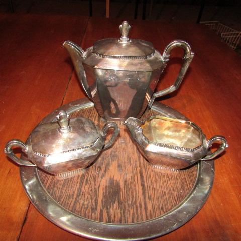 BARBOUR TEAPOT, SUGAR, CREAM AND TRAY