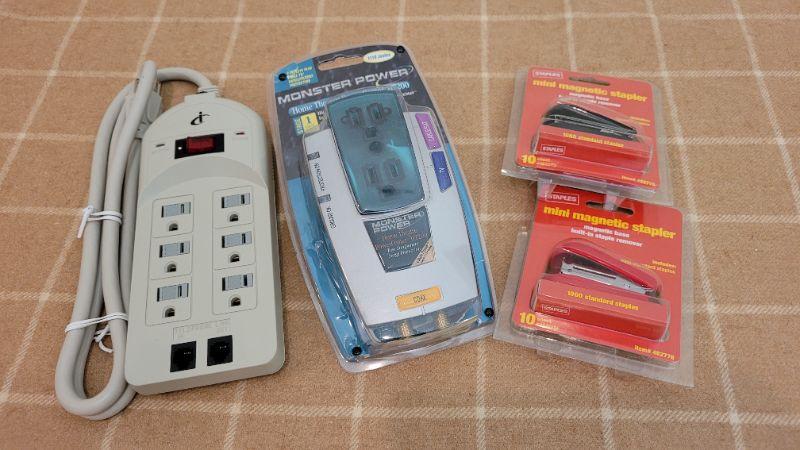 Lot 239: Assorted Office/Home Supplies - Surge Protectors and Staplers