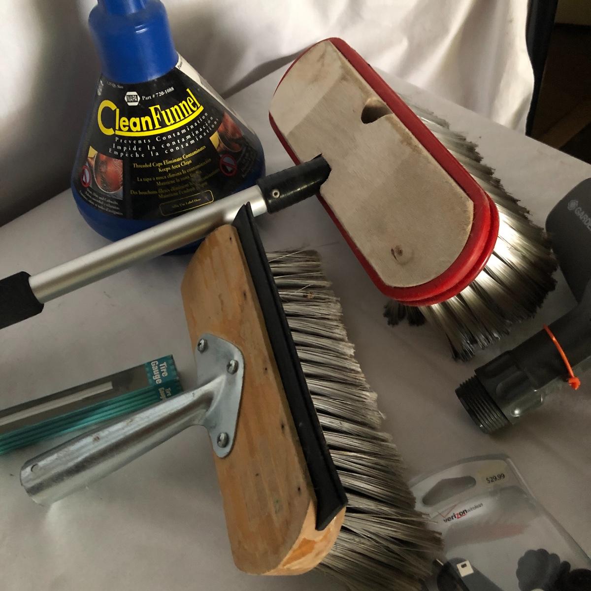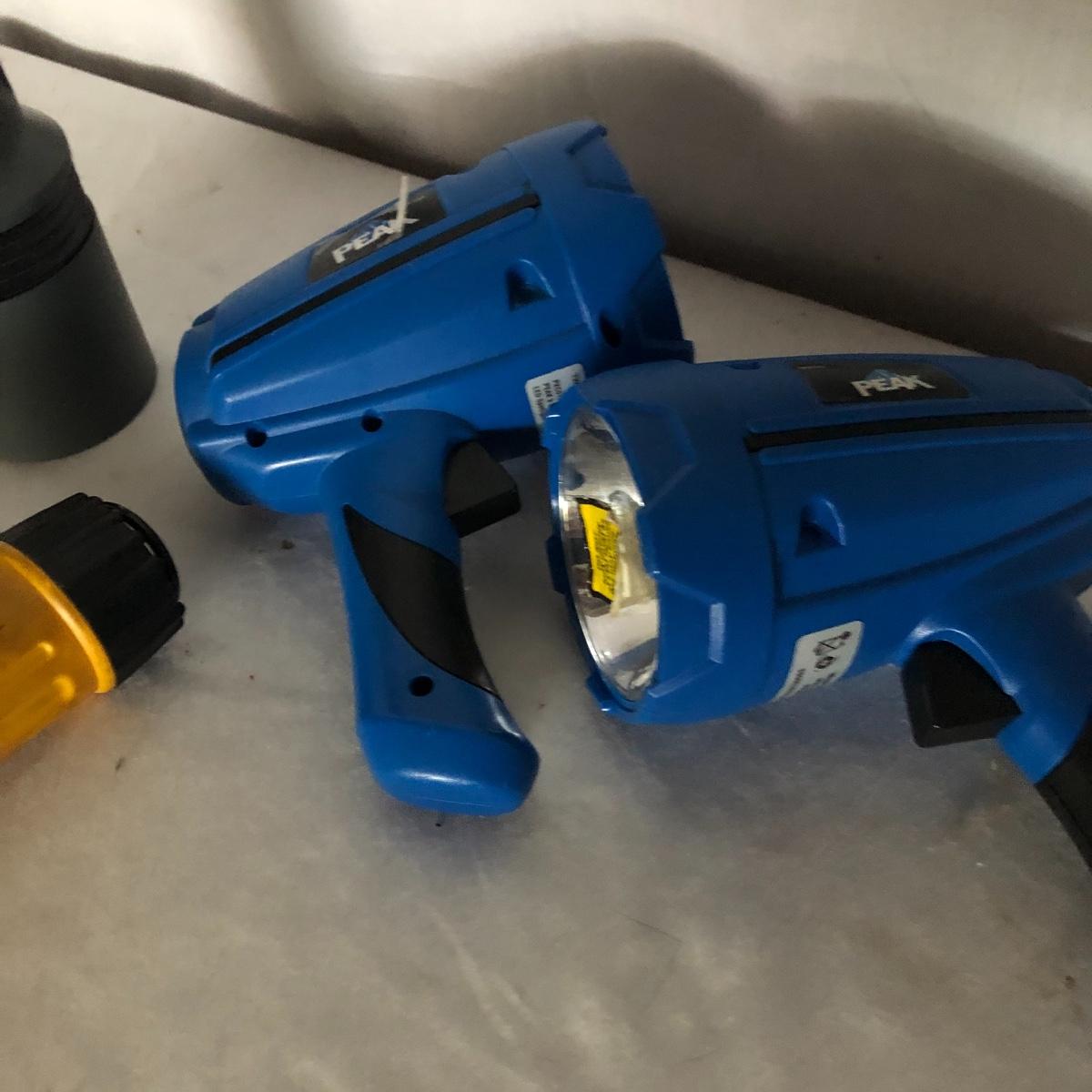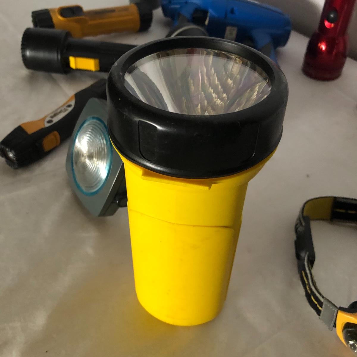 This lot includes car cleaning supplies plus large selection of flashlights! The car supplies are the following: chamois, wash clothes, a sponge, a multi-purpose tool kit-still in the box, brushes, tire gauge and more! There are also eleven flashlights and one headlamp. Not all flashlights have been tested. Local pick up only.