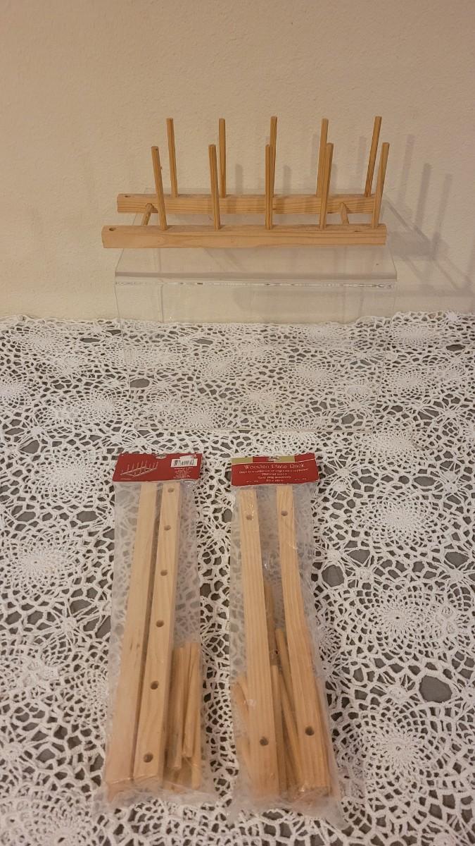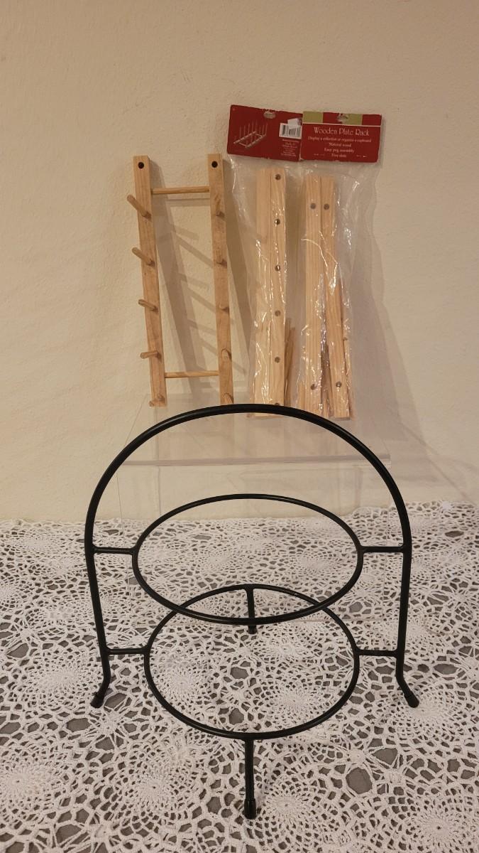 Lot 240: Metal Plate Stand and (3) Wood Plate Racks