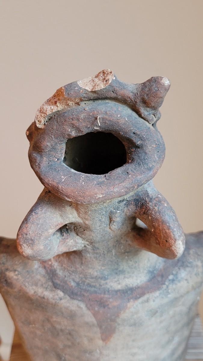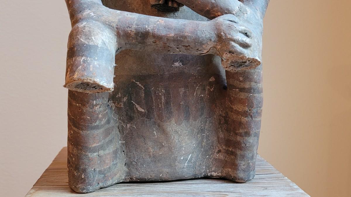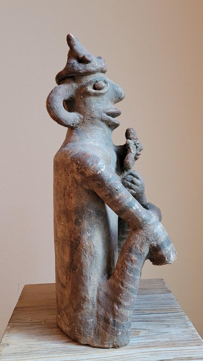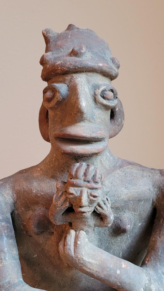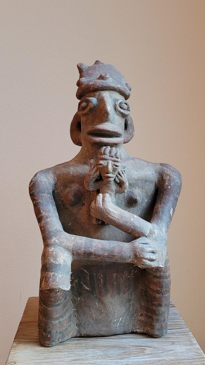 Lot 239: Pre-Columbian Nayarit Woman Holding Baby Jug with Original Paint Present