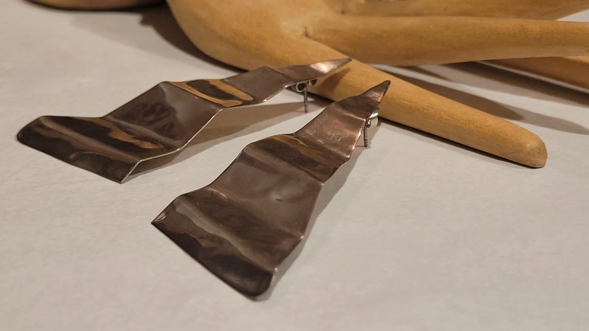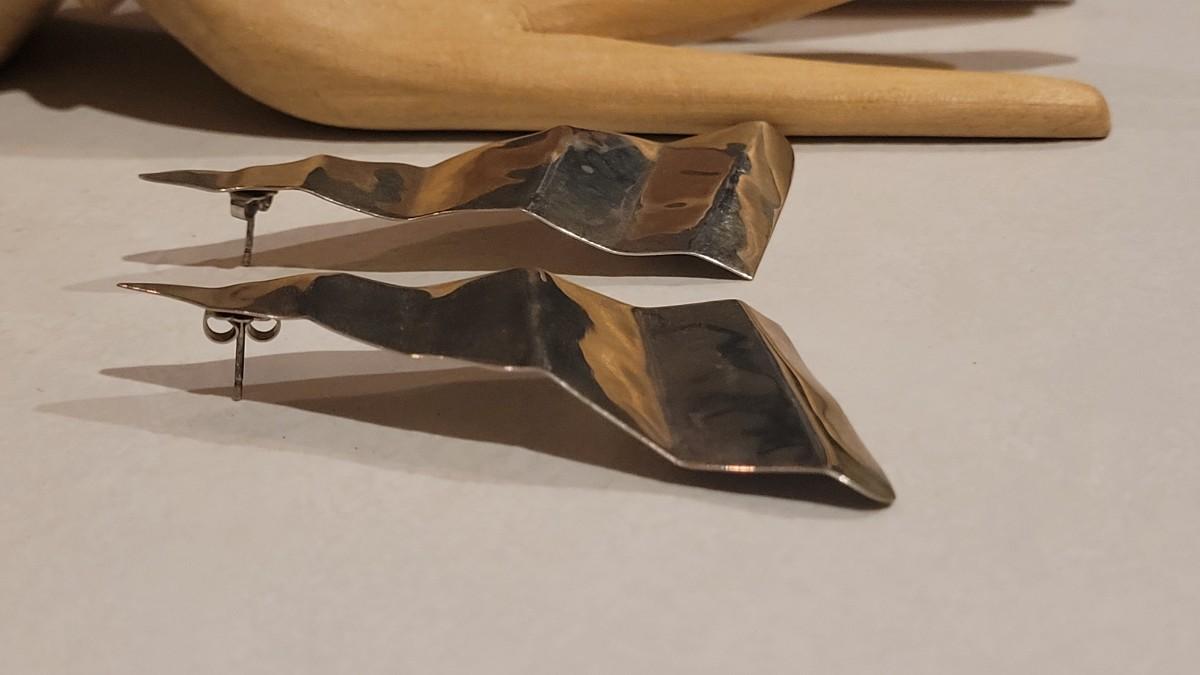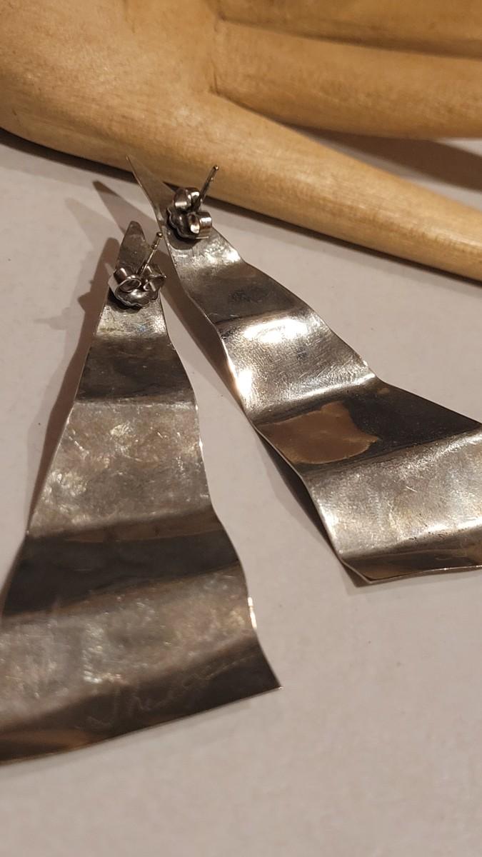 Lot 239: Sterling Artist Made Wavey Triangle Earrings