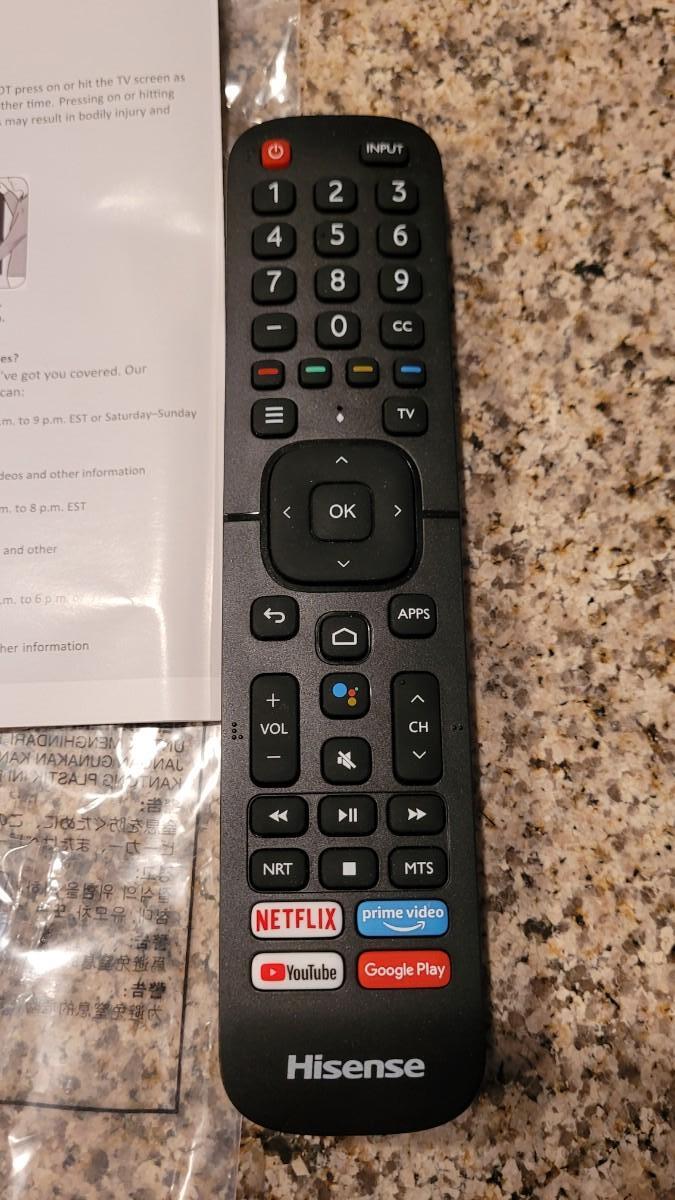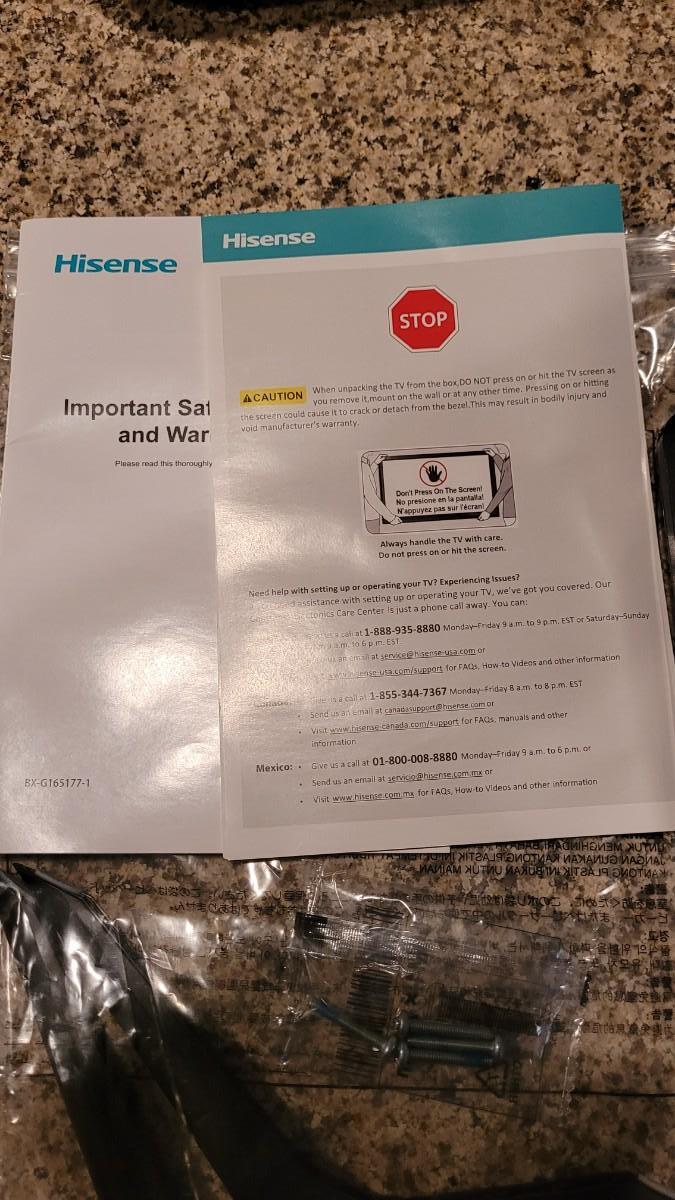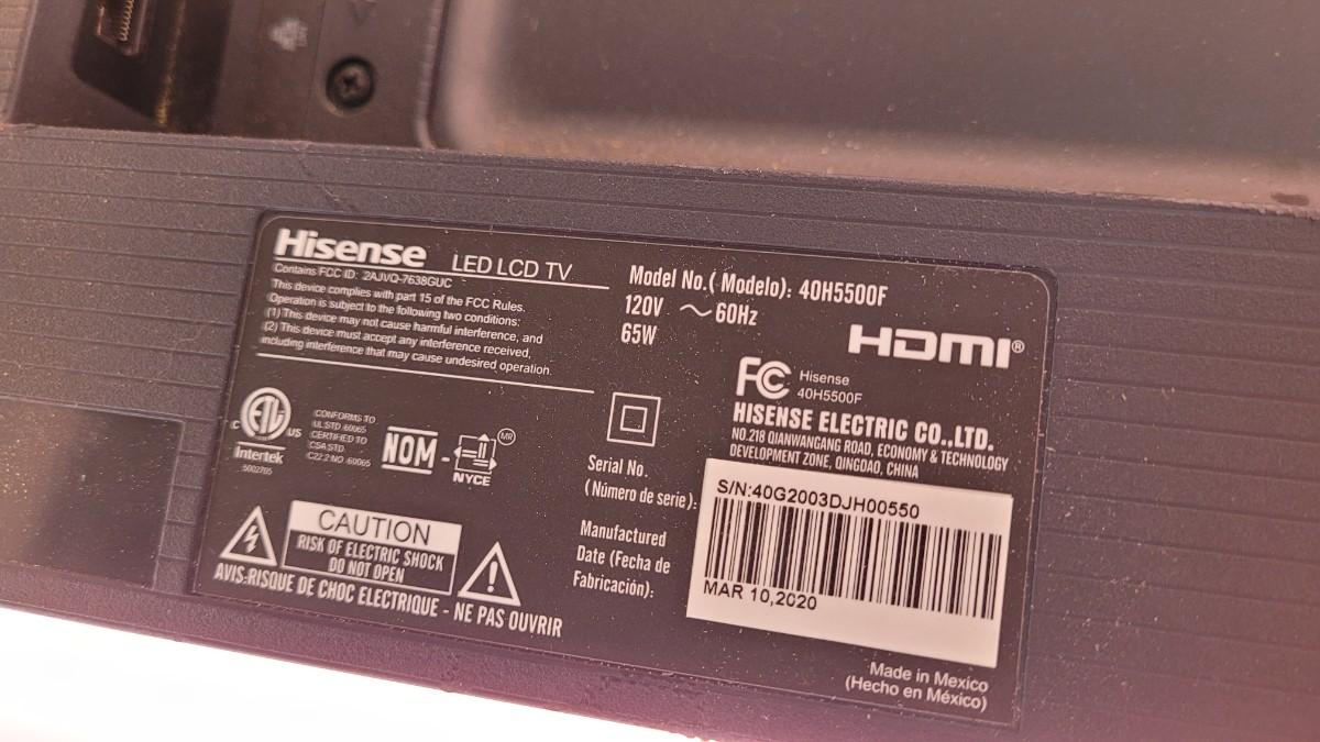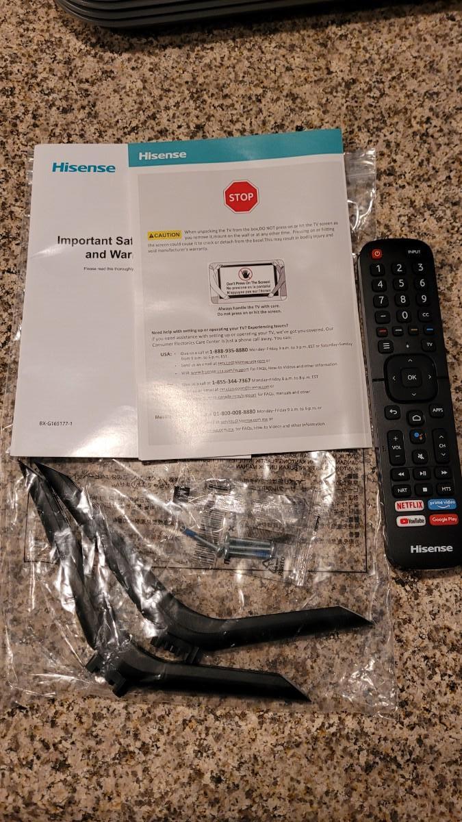 Lot 239: 40" Hisense TV comes with a Pipishell TV Mount, Manual, Remote and Feet for TV