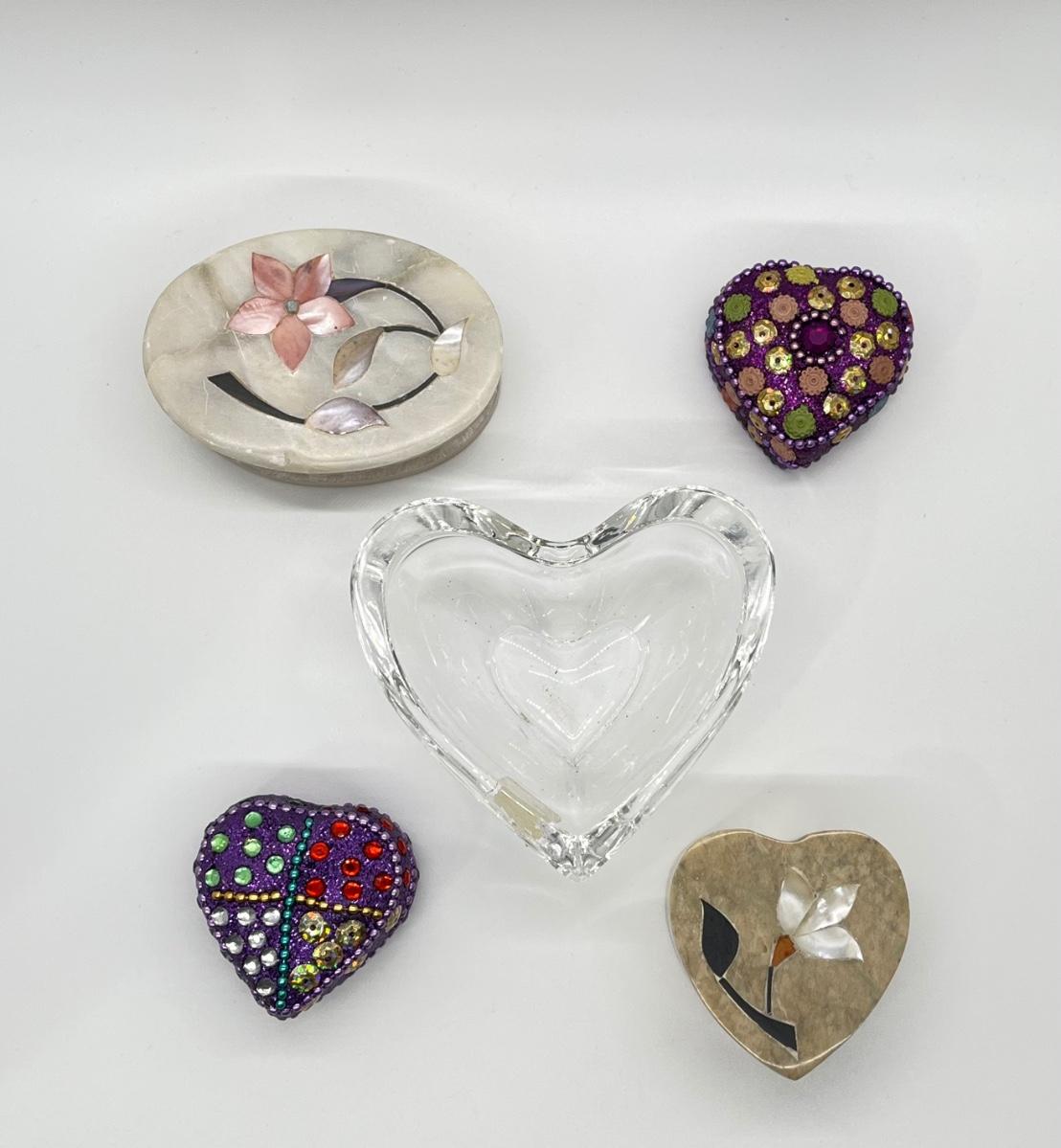 Lot 239: Trinket Boxes and Glass Heart Ring Dish