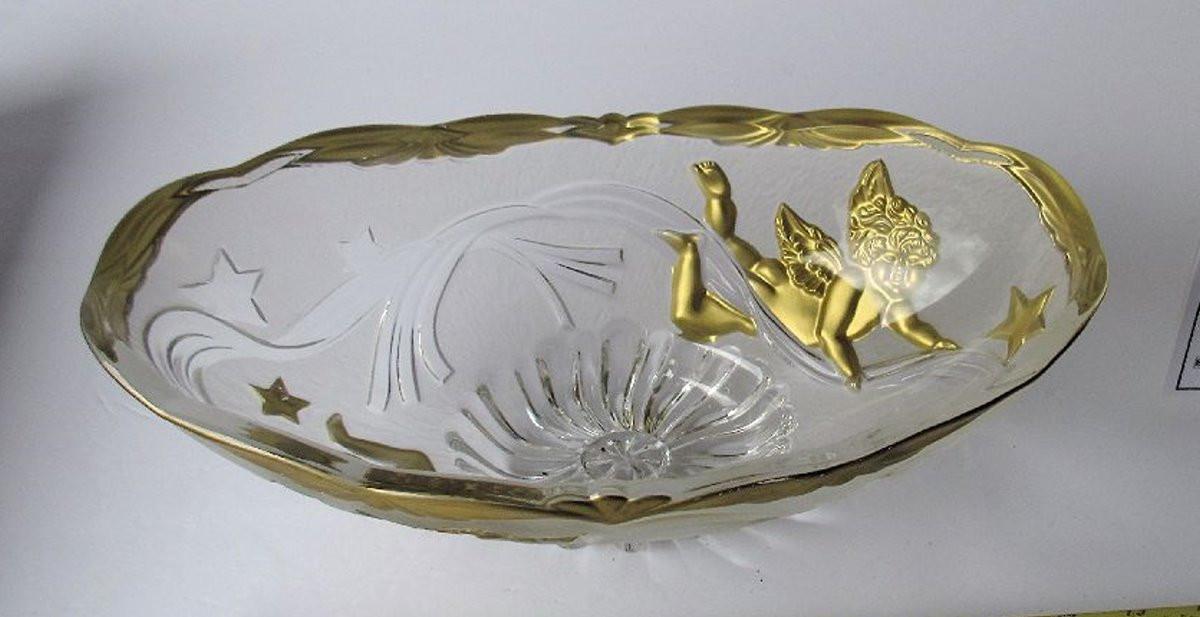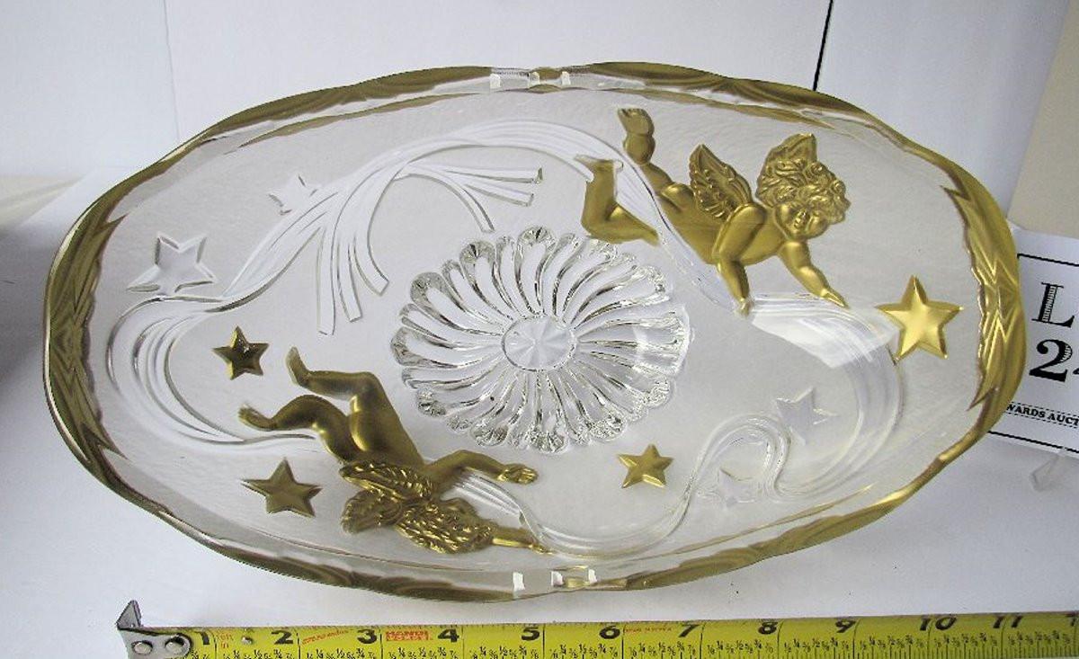 Lot 239: Large Oval Clear Glass Bowl With Angel Images