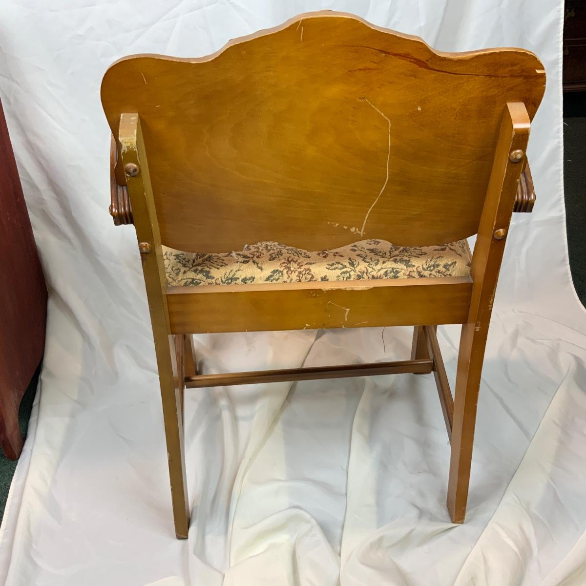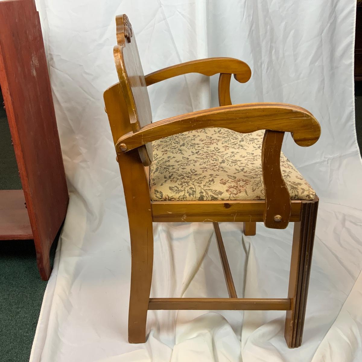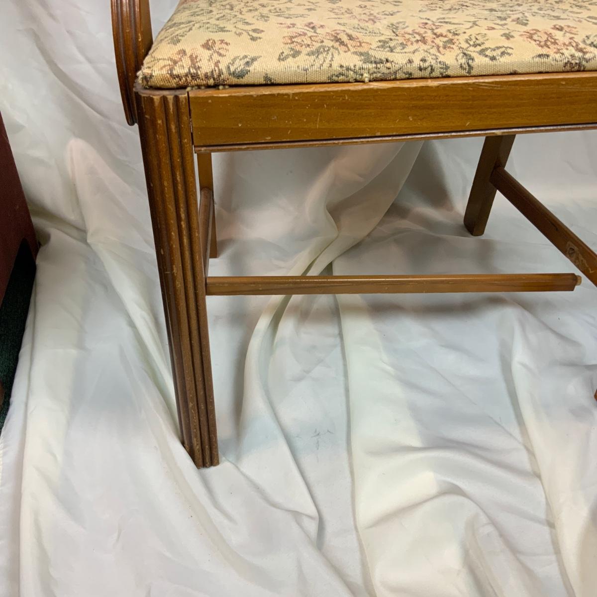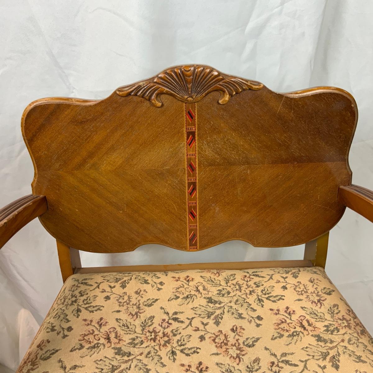 Art Deco Inlaid Back Vanity Chair. Simple repair, and new upholstery. This piece is ready to go. //::\\ Please see photos for details and condition. No attempt has been made to hide any imperfections. All items listed in this auction are warehouse items, and need to be cleaned. A majority of the items need restoration as well. All items are sold AS IS and WITHOUT GUARANTEE. If you are uncertain about an item, DO NOT BID. Due to the nature of this online auction in-person inspection is HIGHLY recommended. All Sales are FINAL. Pick Up Times are FIRM. Please confirm with your own schedule that you can pick up in the scheduled times listed in the Terms and Conditions. Any questions please message the auctioneer. DO NOT Contact The Harp Gallery.