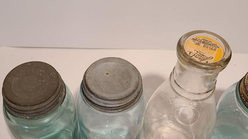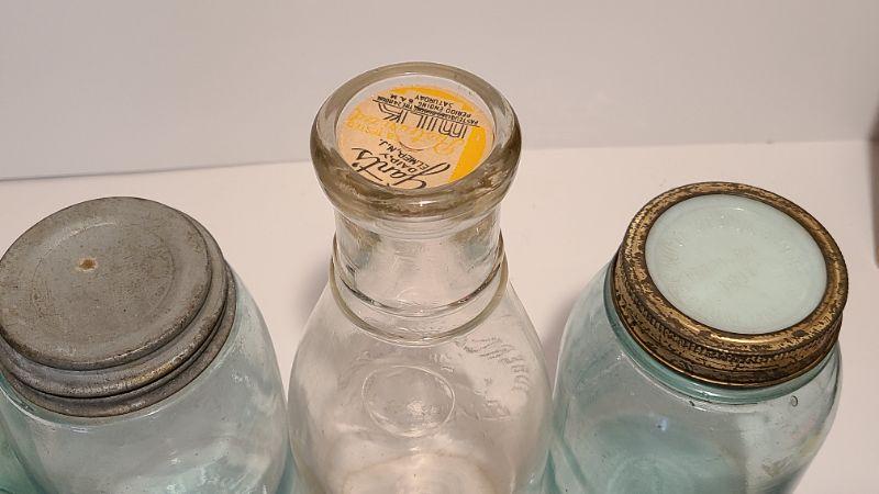 Unique Mason Fruit Jars and Milk Bottle from Elmer. Each lot is unique and you will need to see all pictures. Pictures have been taken from all side to see condition and markings. What you see in the pictures is the actual content of the lot and the pictures are the best representation of the bottles. All bottles are sold-is according to the pictures. For further information please google the makers marks for age.