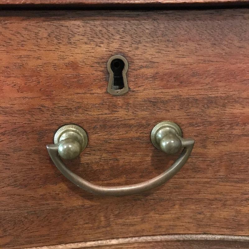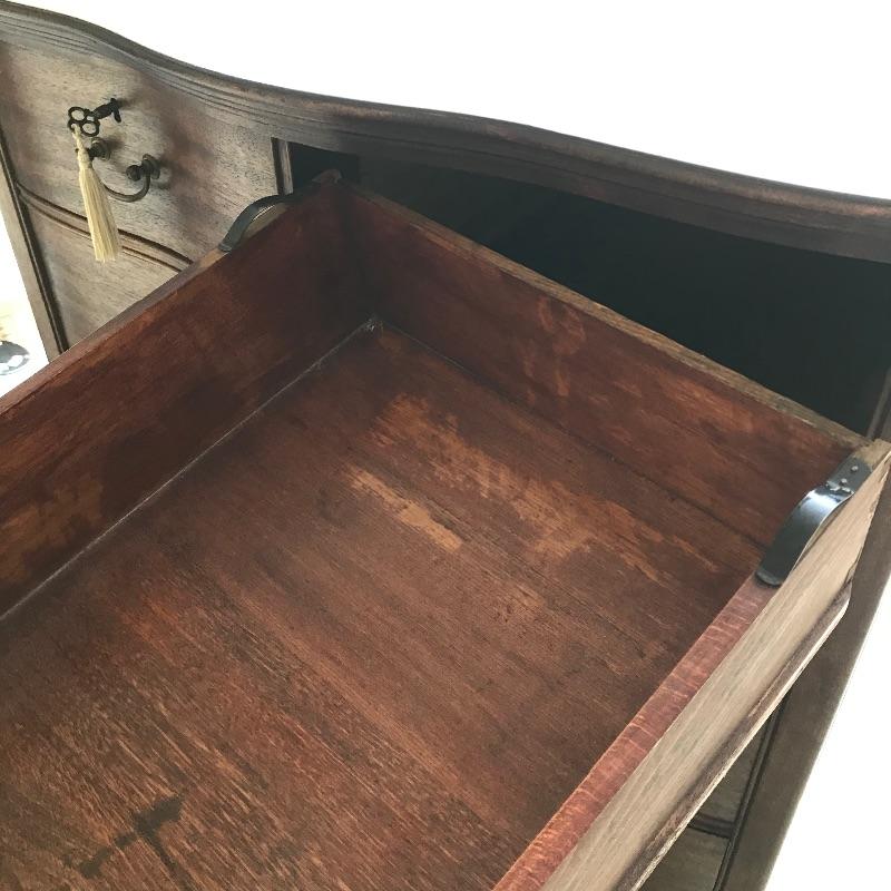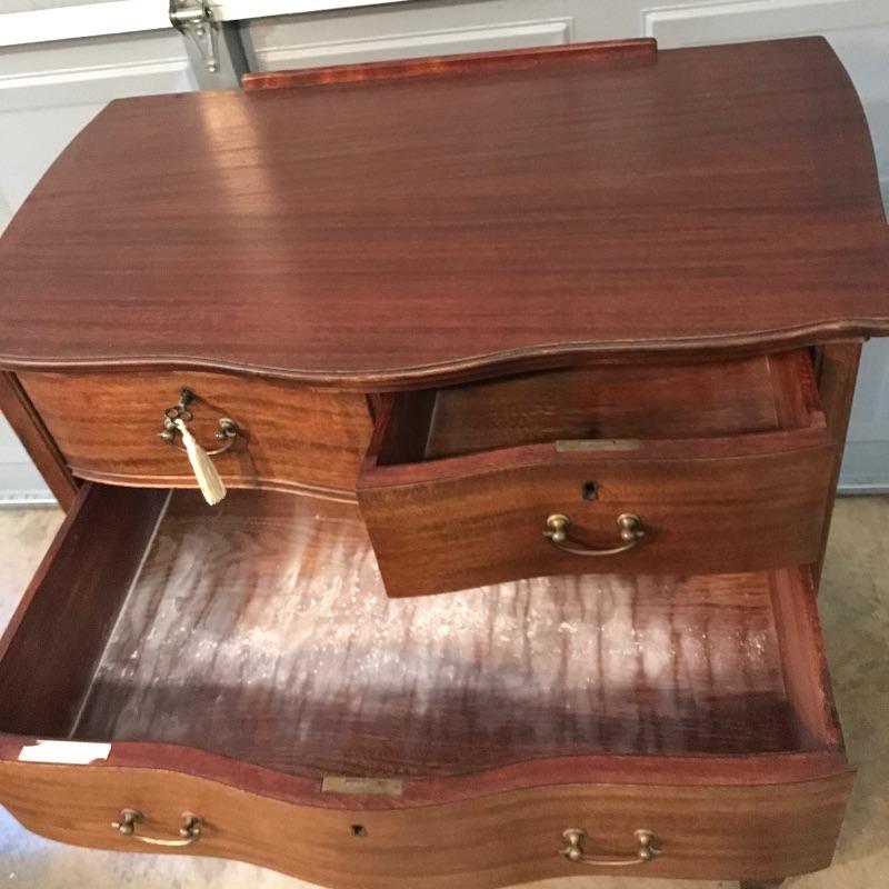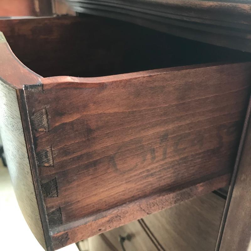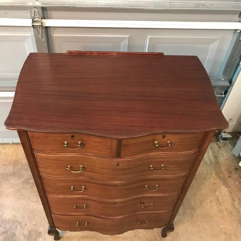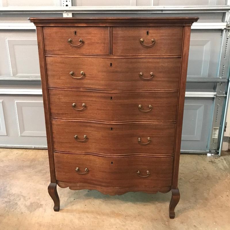What a beauty this vintage Chicago Hotel Dresser is and it is in fantastic condition with a beautiful deep brown gorgeous wood grain. Six dovetail drawers with brass pulls glide smoothly. This piece even has a stained backside to create an all-around glamorous piece. One vintage key is also included. Dresser measures approximately 31.75” x 20” x 44.25”. Don’t let this one get away. See photos. No shipping.