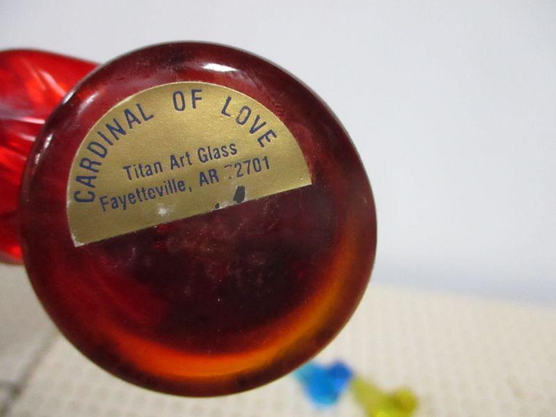 Titan Art Glass Paperweight Red Bird Cardinal of Love