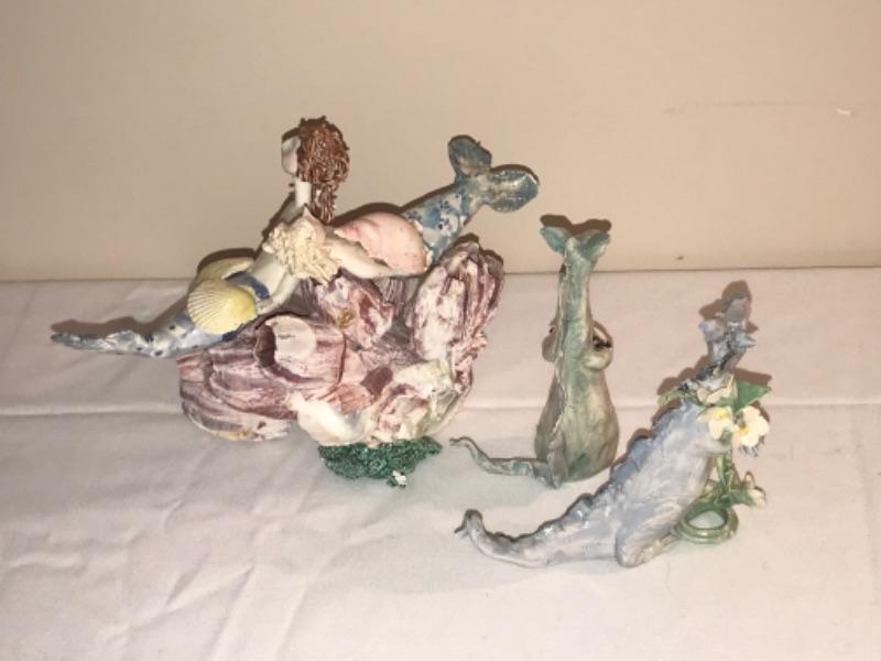 Lot #236 JSP Signed Mermaid and Dragon Figurines