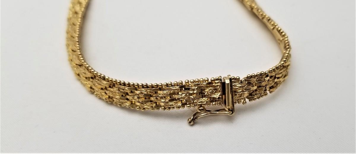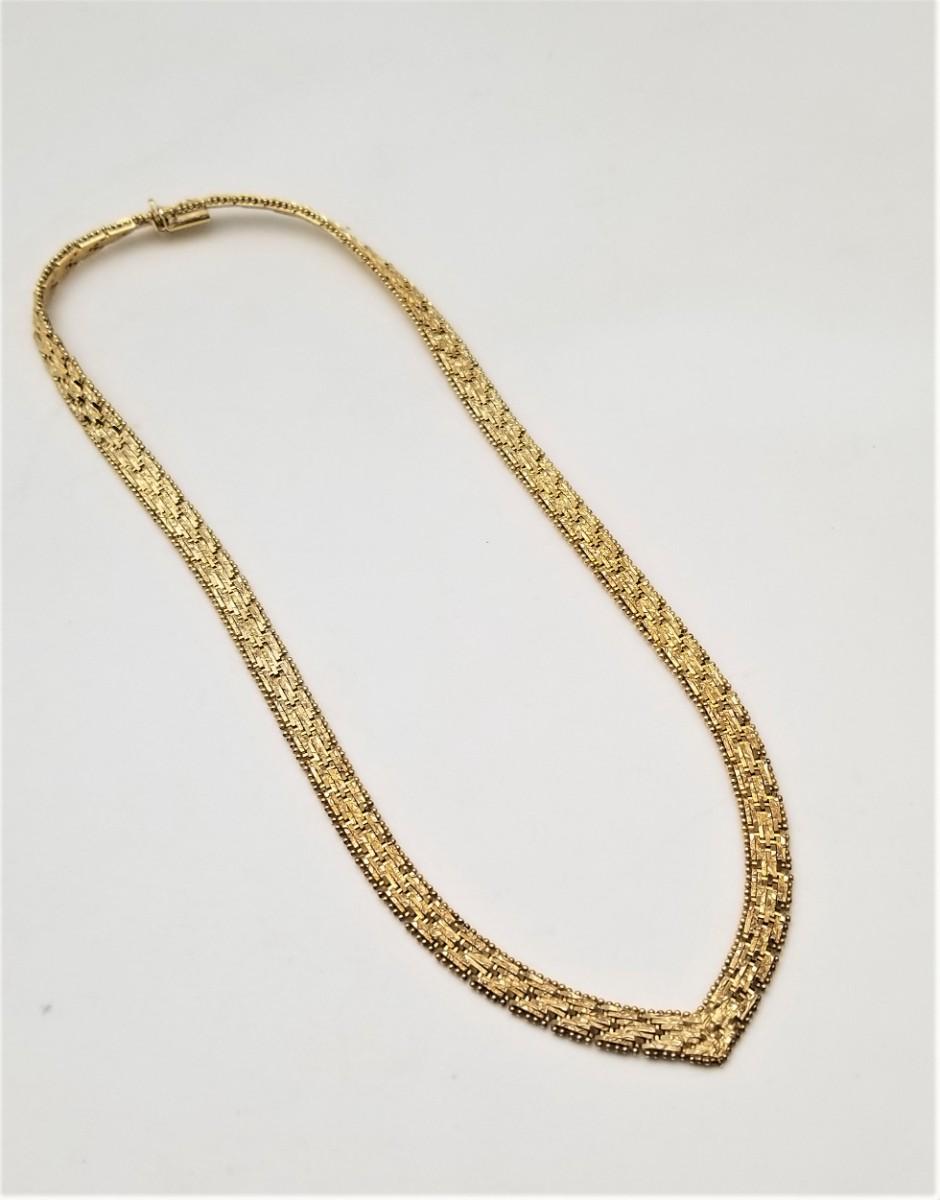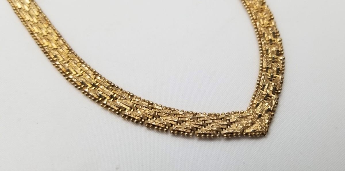 Lot #239 Sterling Silver (Gold Plated) Bright Cut Herringbone Necklace