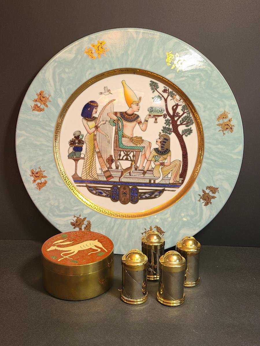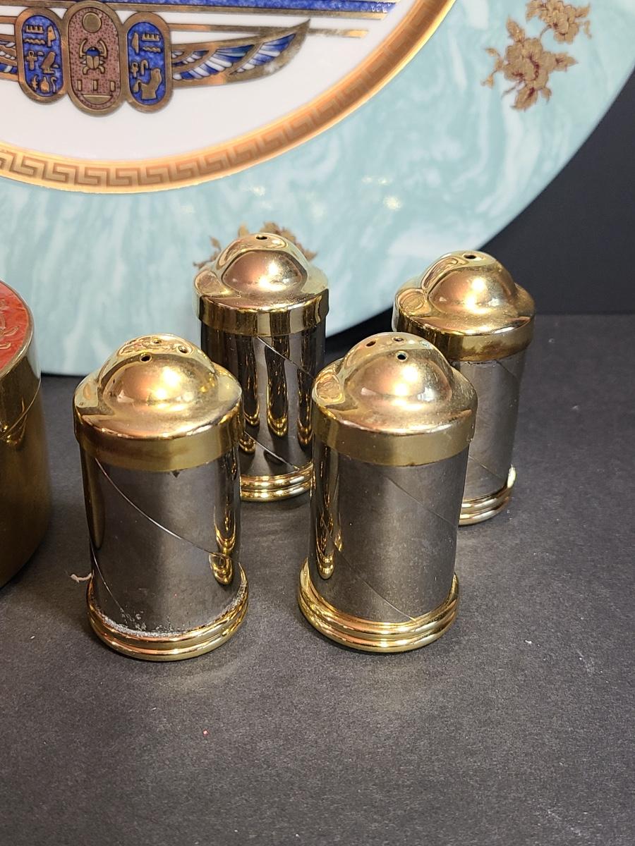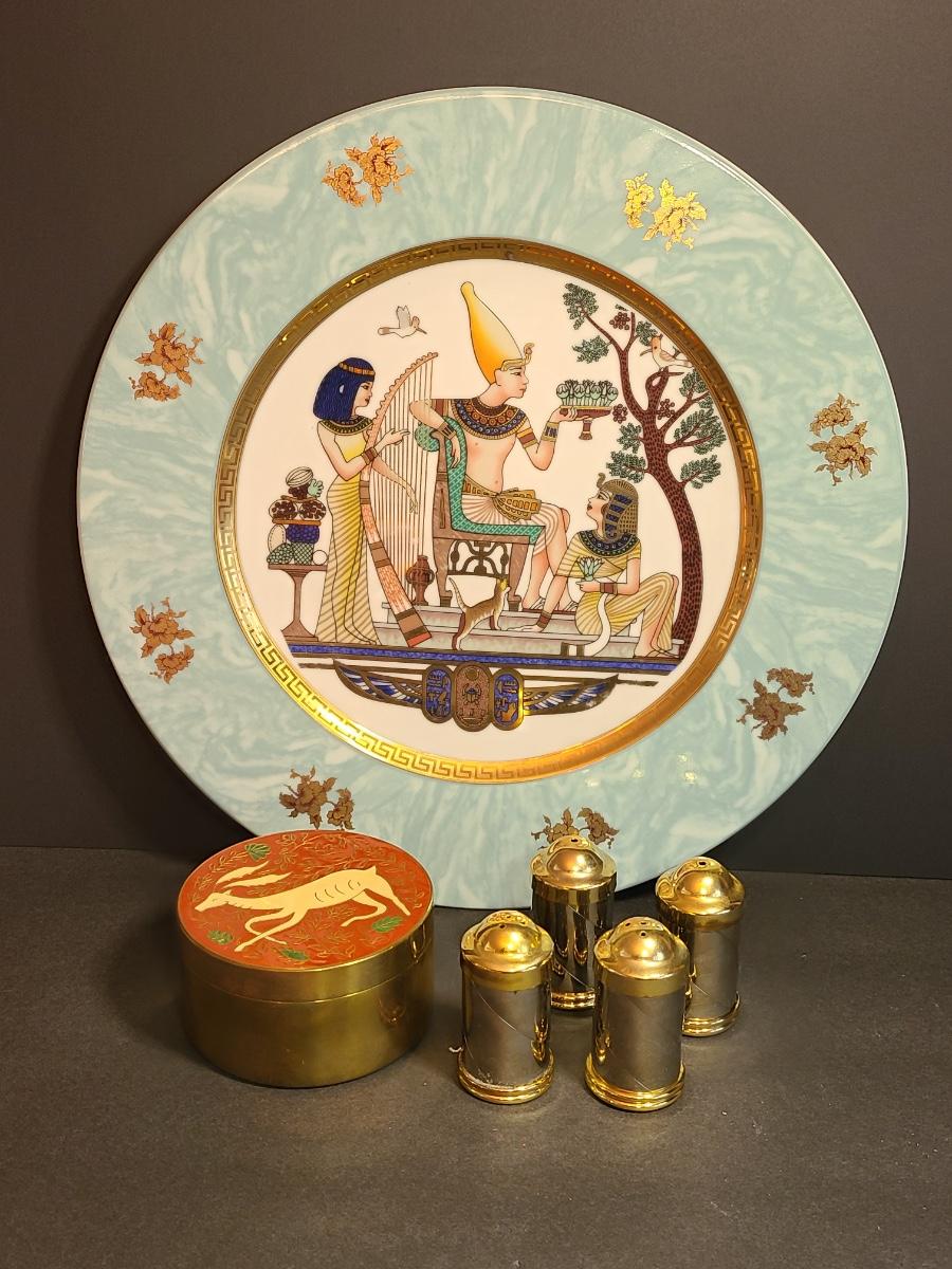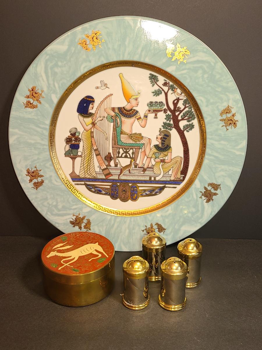 Lot 239: Vintage Brass Trinket Box, Plate, and Salt/Pepper Sets