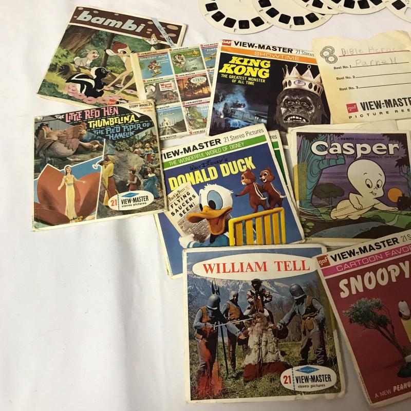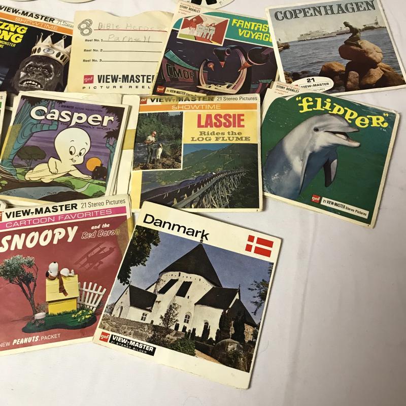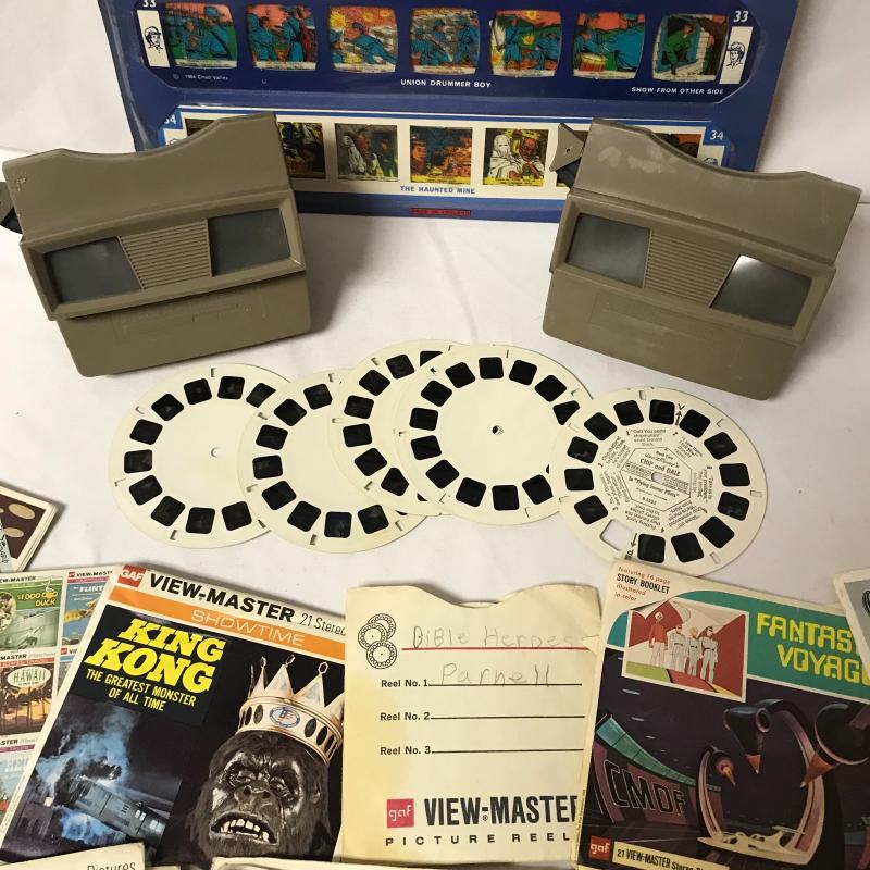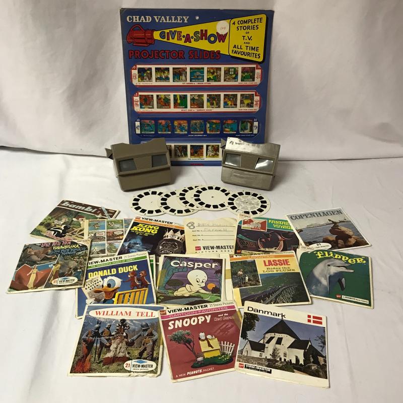 Return to your childhood! This fun lot includes two vintage View-Masters and a diverse collection of View-Master slides. Lot also contains dozens of old family photo slides and Give-A-Show projector slides. See pics. Shipping available.