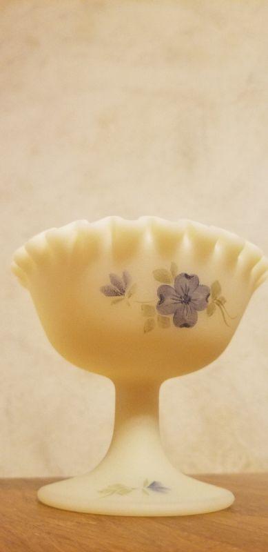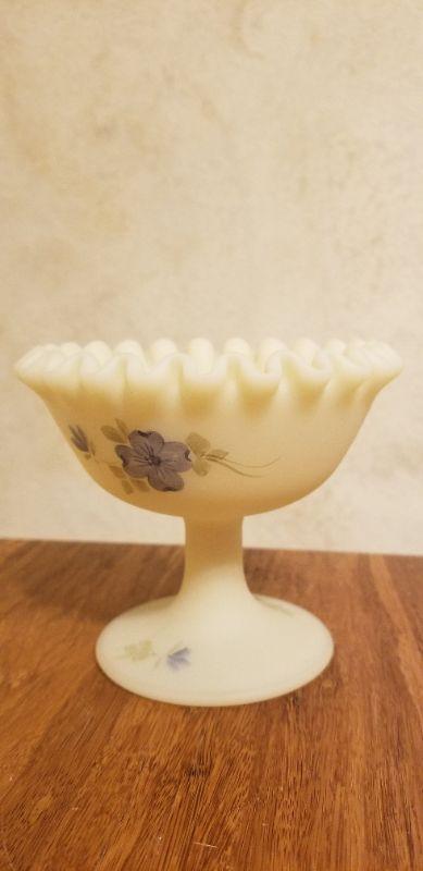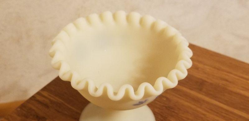 Lot 2-395: Antique/Vintage FENTON Art Glass Hand Painted SIGNED Ruffle Top Dish 4.5" x 4.5"