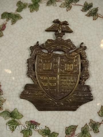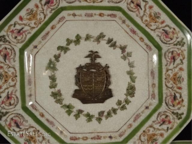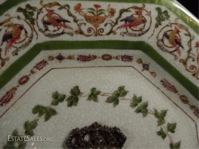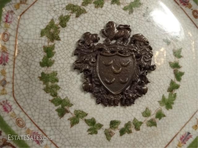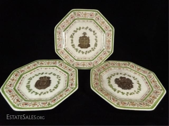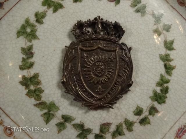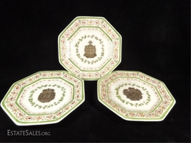 LOT 23C: 3 PC PORCELAIN PLATES WITH BRONZE APPLIQUES