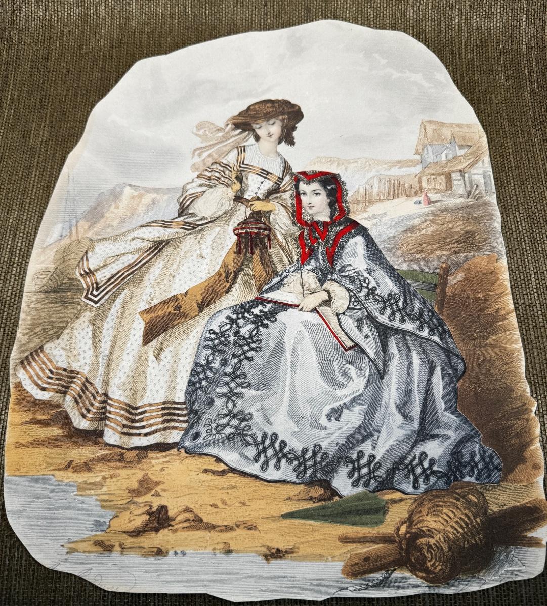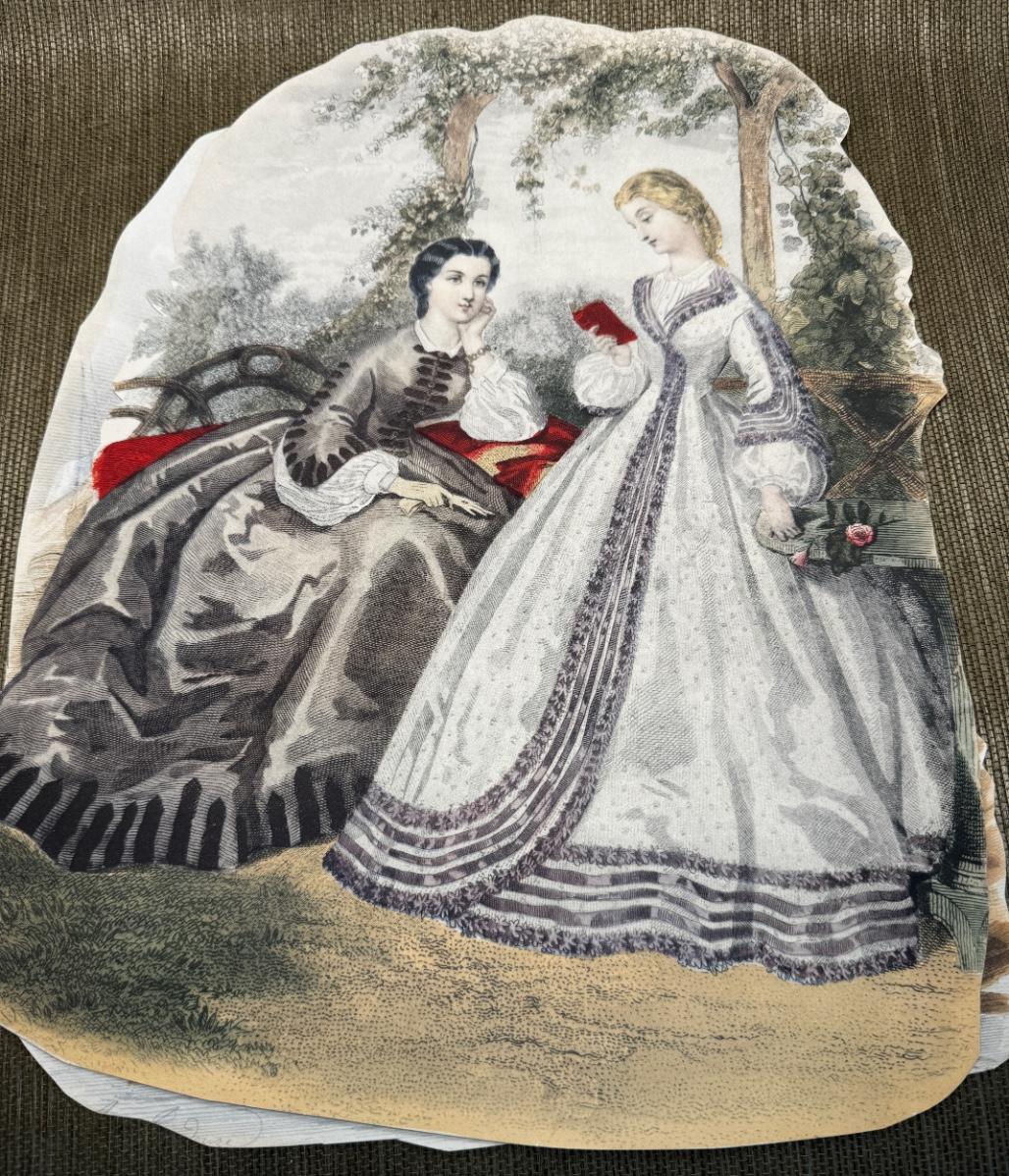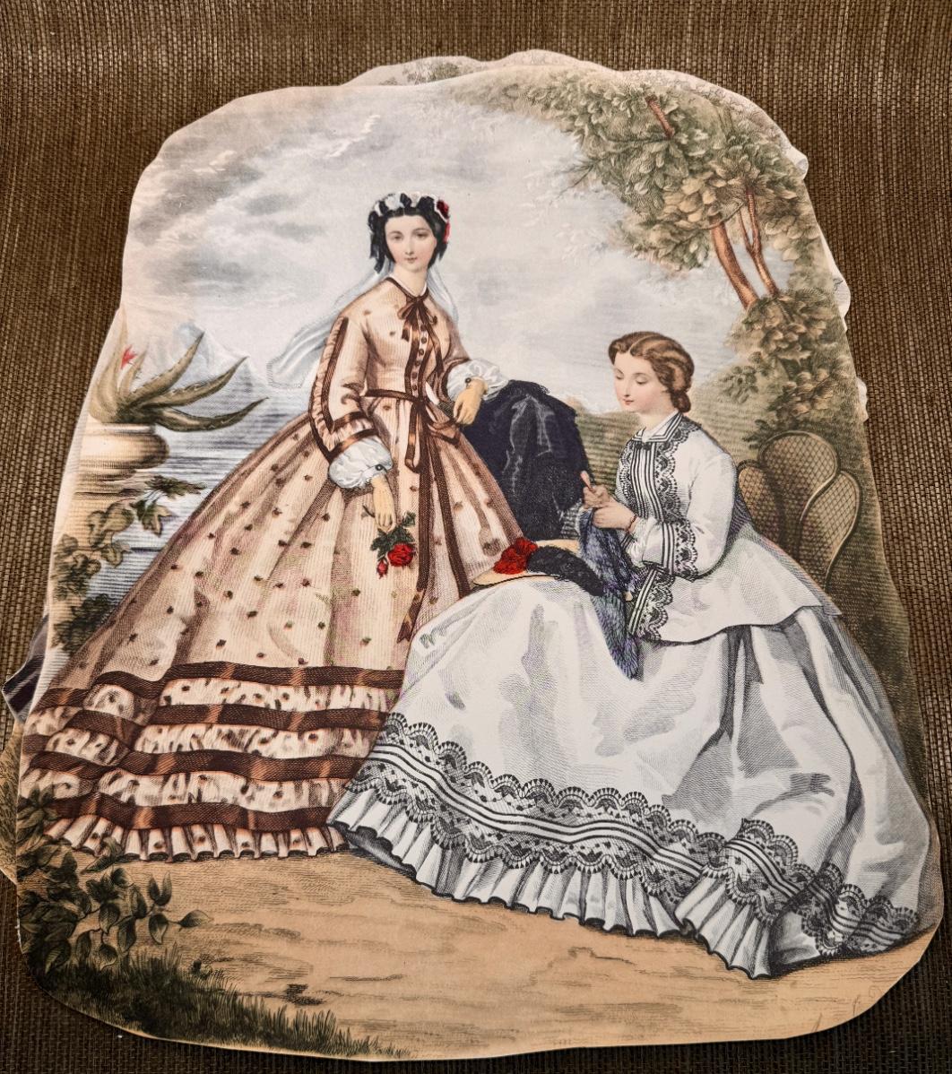 LOT 24 - Large Victorian La Mode Illustree clipped prints. These Victorian prints have been cut, possibly for a scrapbook. Backs are clean. Overall measurements are 10” by 13”.
