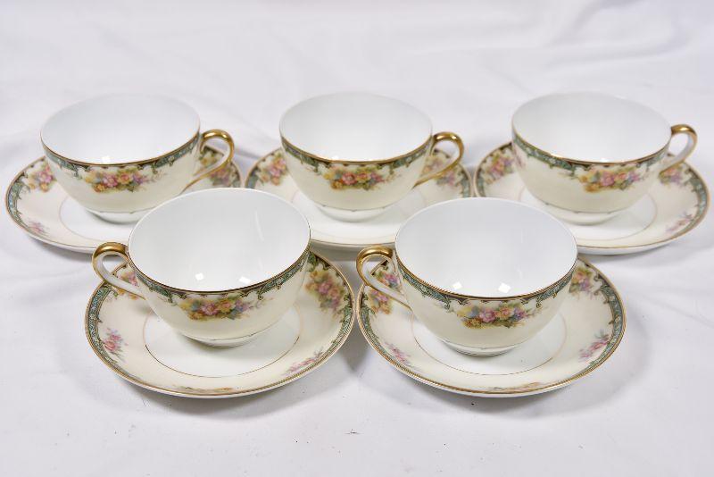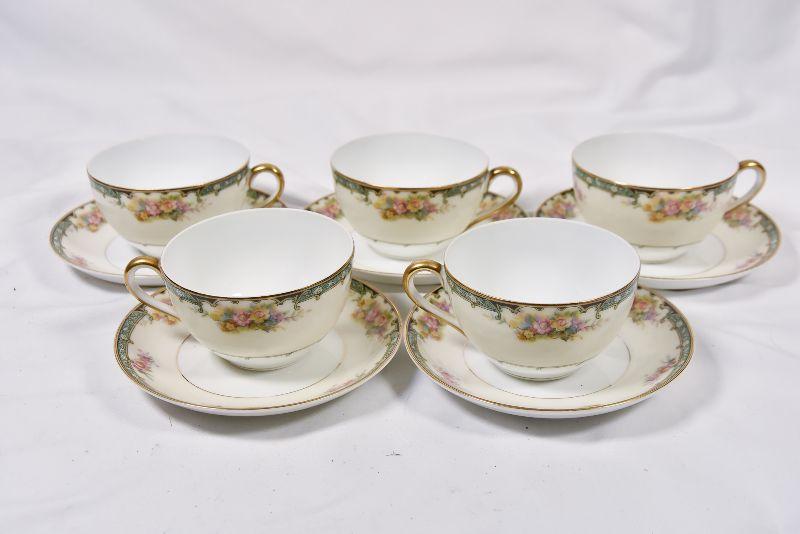 Lot 24: Set of 5 Noritake "Estelle" Tea Cups and Saucers