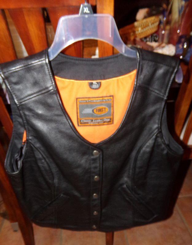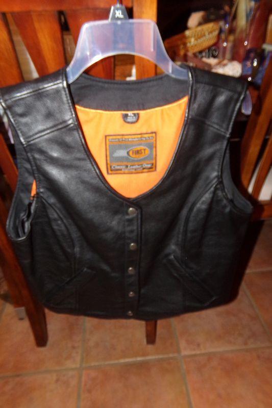 "FIRST CLASSICS" LADIES X-LARGE LEATHER RIDING VEST AND HARLEY DAVIDSON LEATHER GLOVES