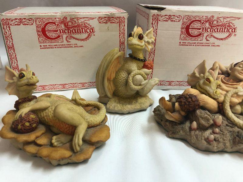 Highly desirable dragon figurines. Please see all pictures for the exact contents of the lot, condition, and measurements when needed. Thank you for looking and have fun bidding!