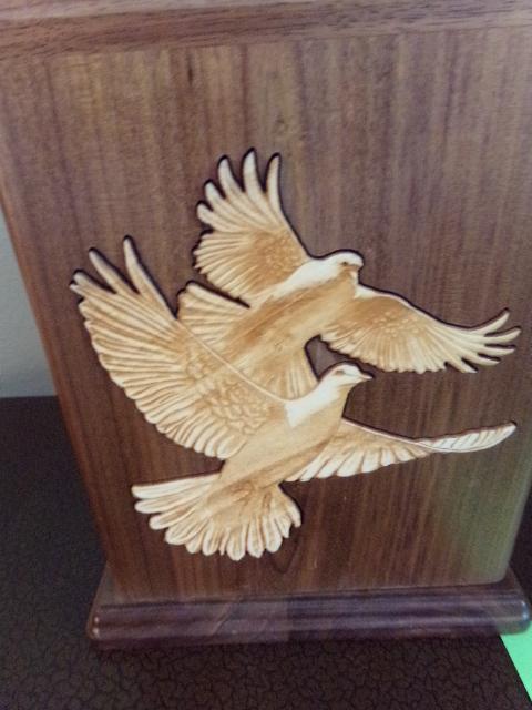 WOODEN BLOCK WITH EAGLE & DOVE? MEASURES 7 1/2"X9"