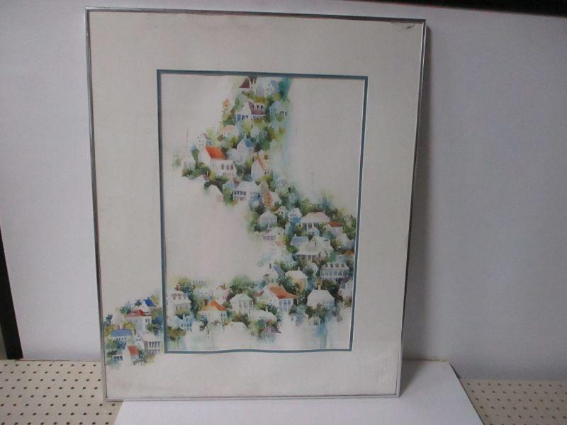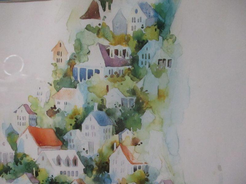 Lot 24 - Victoria Platt Ellis “Houses” Watercolor Framed and Matted Painting Signed