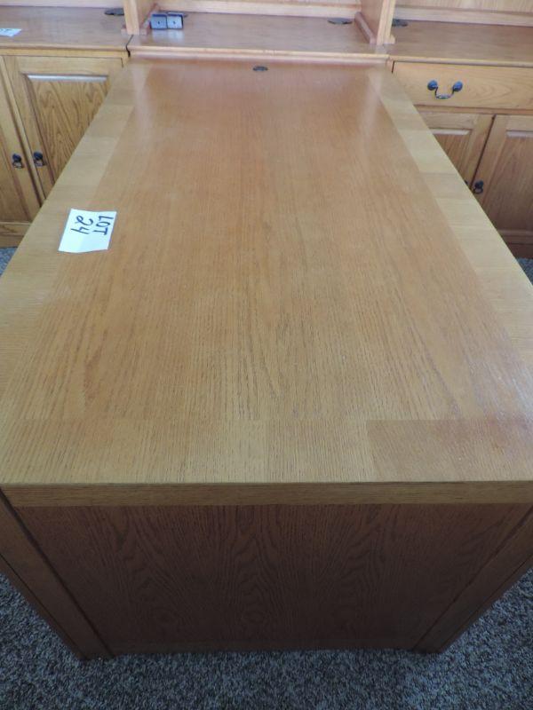 LOT 24  SOLID OAK PARTNER DESK WITH HUTCHES