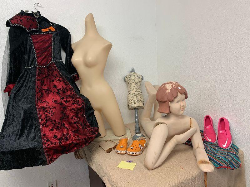 Girls Costume dress, pair of crocs size 12-13, 1 pair Nike Size 13, apron and pot holder, etc.“🦆